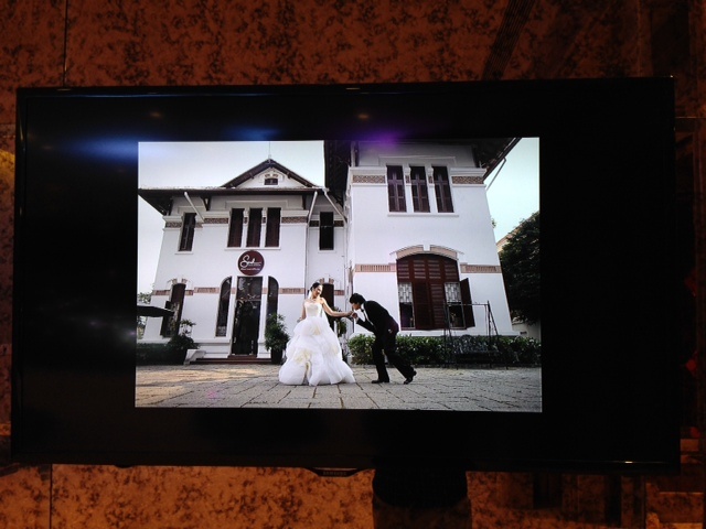 Các bức hình được thực hiện theo phong cách tự nhiên, đơn giản và được đặt ngay tại sảnh tiếp khách của tiệc cưới. Quan khách có mặt trong tiệc cưới đều dừng chân ngắm nhìn những bức hình này trước khi bước vào phòng tiệc.