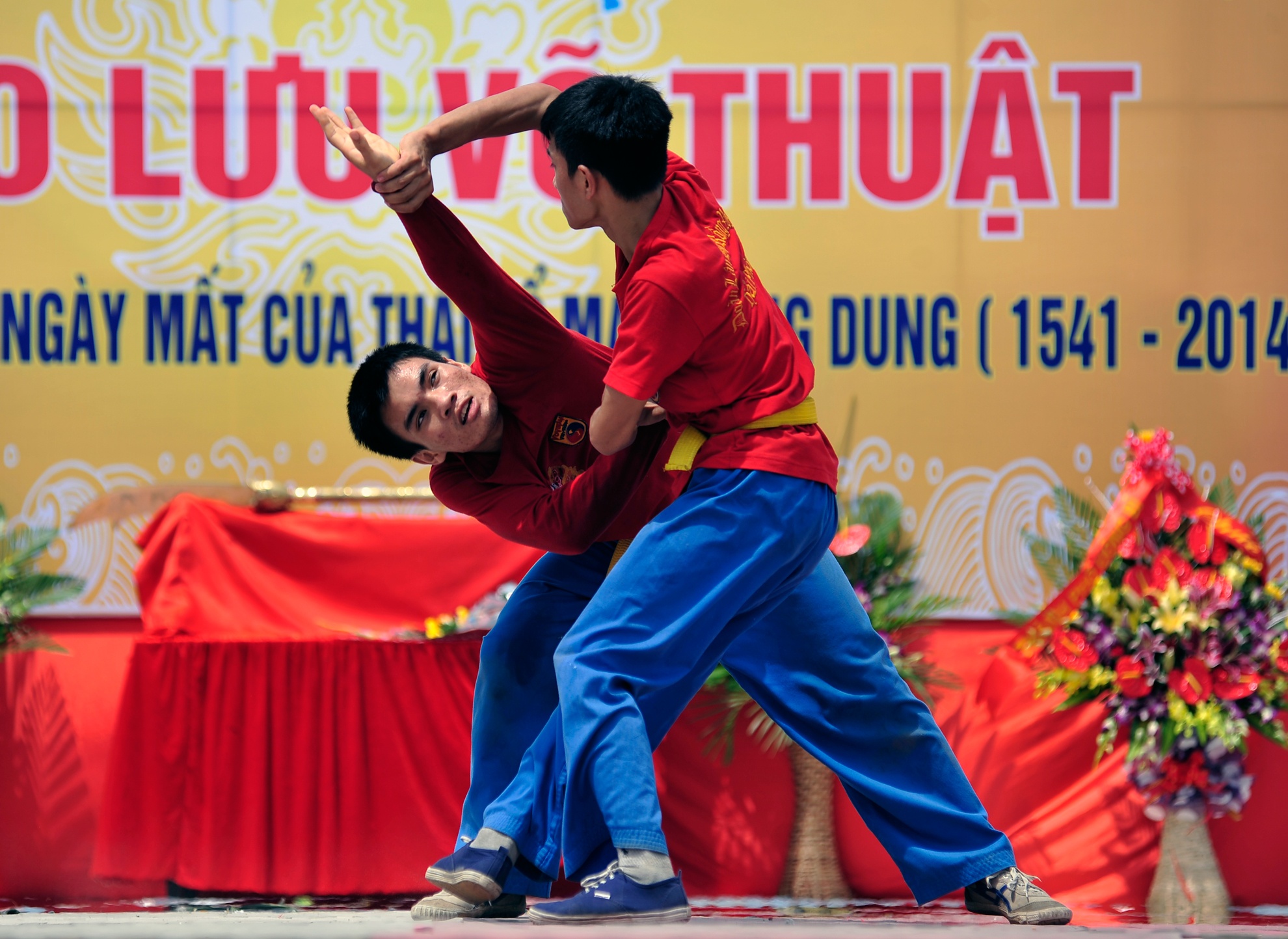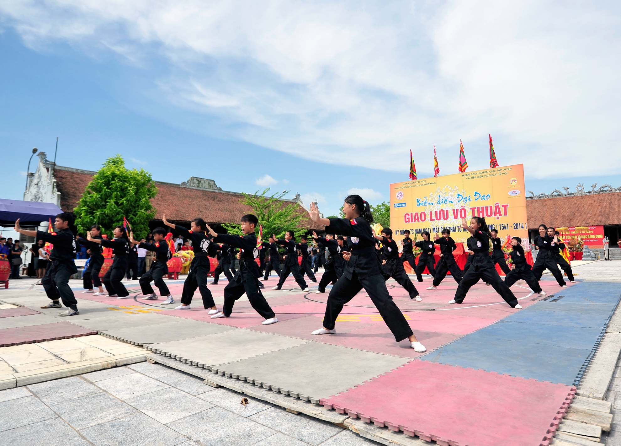 | Điểm nhất trong dịp lễ là phần biể diễn của 8 võ đường, câu lạc bộ võ trên địa bàn thành phố trình với các màn diễn võ thuật đặc sắc ở 3 nội dung đồng diễn, đối luyện, công phu như đội hình cờ bát quái, Thần đồng quyền, đối luyện mái chèo, Thái côn sơn, Huỳnh long độc kiếm… |