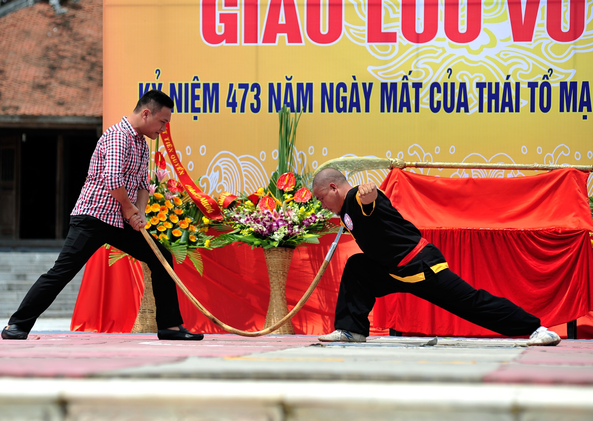 Ngoài các màn võ thuật độc đáo, trong dịp kỷ niệm 473 năm ngày mất của Thái tổ Mạc Đăng Dung, thanh hoàng đao hơn 500 tuổi được trưng bày cho mọi người chiêm bái.
