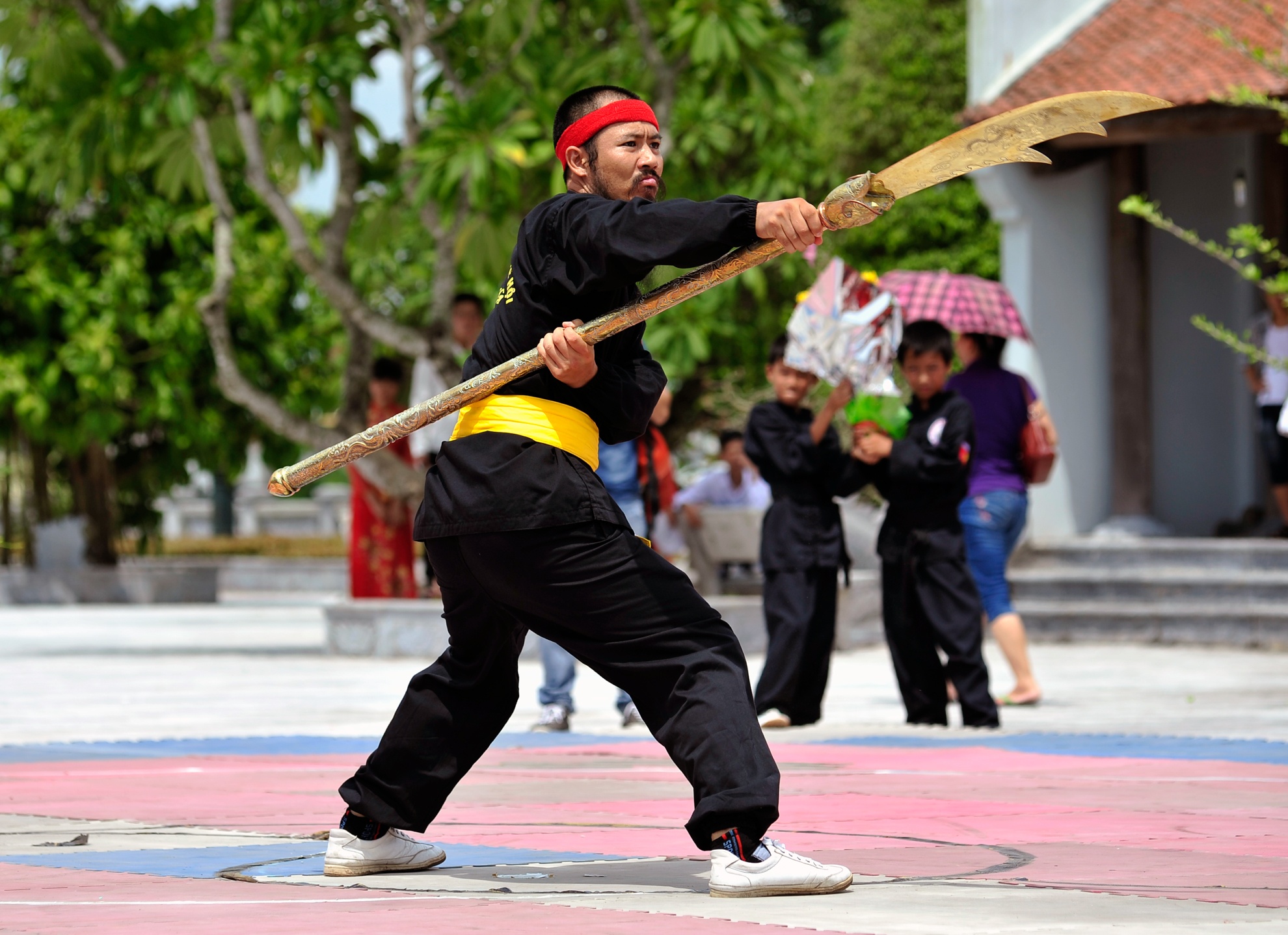 Võ sư Nguyễn Văn Hải Biền - võ đường Quốc Dũng biểu diễn Đại Đao siêu tứ môn phá trận, đây là thanh đao có kích thước giống với Đại đao của Thái tổ Mạc Đăng Dung và có trọng lượng hơn 15kg.