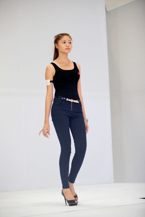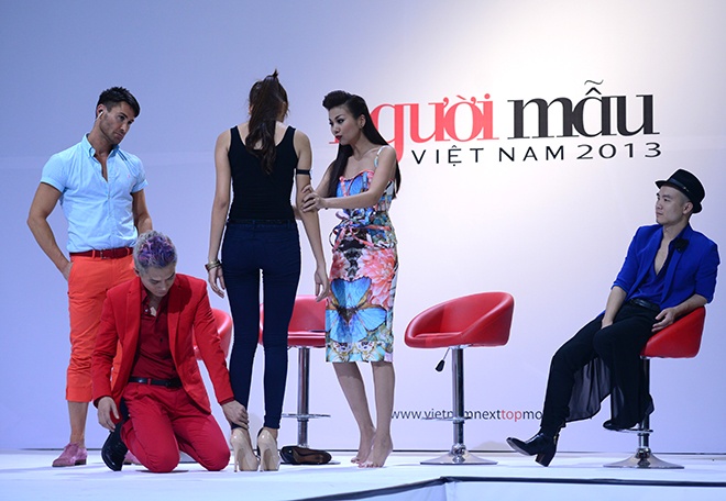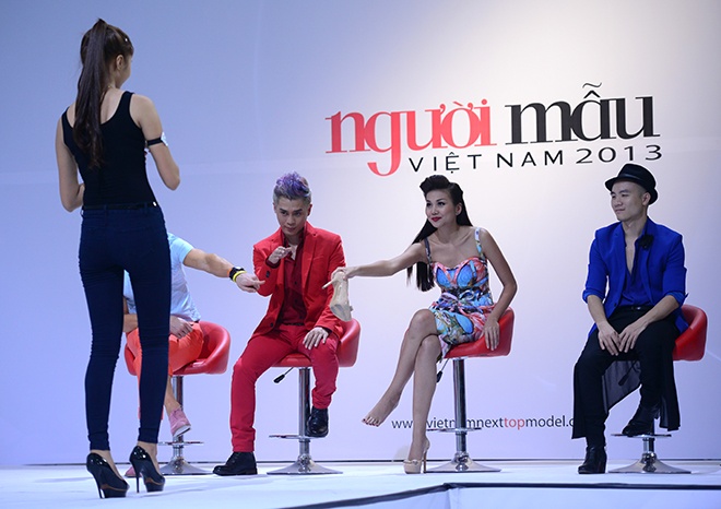 | Nam Trung thì cong người hướng dẫn thí sinh tạo dáng trước khi cả bốn giám khảo nhất trí cho phép cô gái thử sức ở vòng thi tiếp theo là bikini và shooting. |