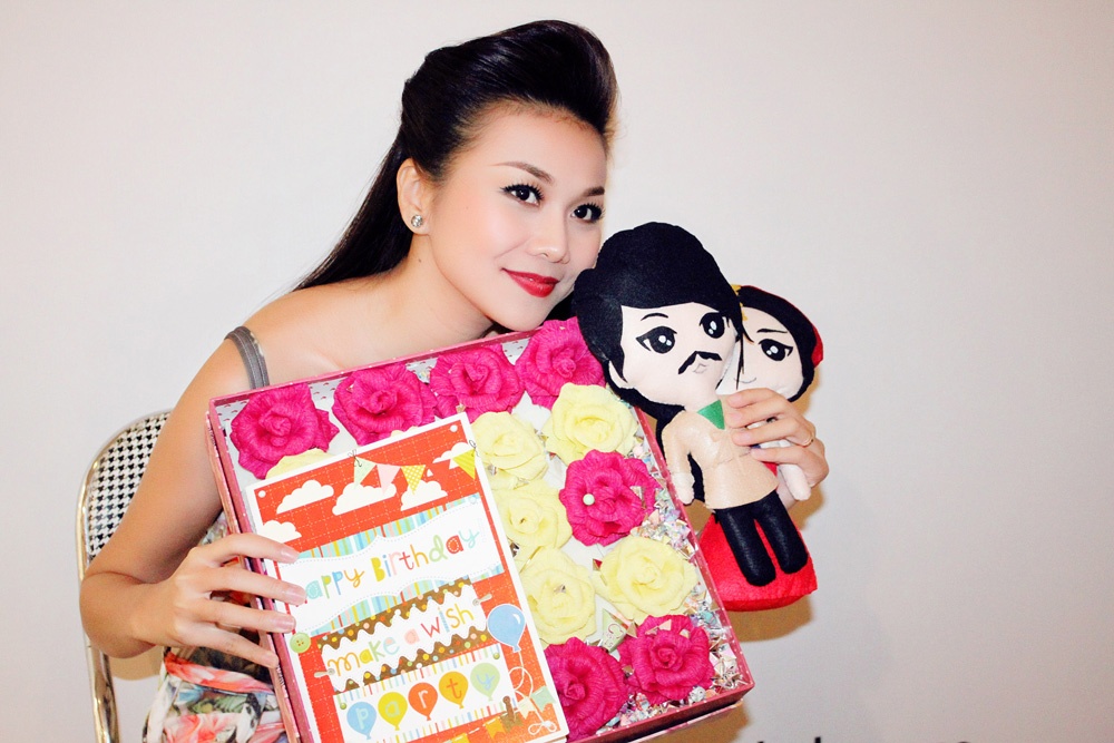 Thanh Hằng tiết lộ đây là những món quà sinh nhật muộn mà các fan dành tặng cô. Đúng vào dịp sinh nhật, Thanh Hằng lại bận việc ở TP.HCM nên không thể ra Bắc chia vui cùng các fan ruột.