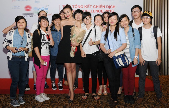 Kết thúc sự kiện mà Thanh Hằng làm đại sứ tối 5/12, cô bị các fan vây chặt. Vì sự kiện tổ chức tại một khách sạn lớn ở TP.HCM nên số lượng người hâm mộ được vào trong gặp mặt Thanh Hằng không nhiều.