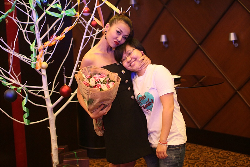 Cô cũng thoải mái dành cho các fan ruột những cái ôm chân tình và liên tục khoe các biểu cảm ngộ nghĩnh trên khuôn mặt khi tạo dáng chụp hình.