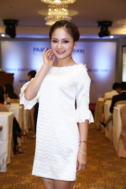 | Lan Phương nhẹ nhàng với bộ váy trắng muốt. |