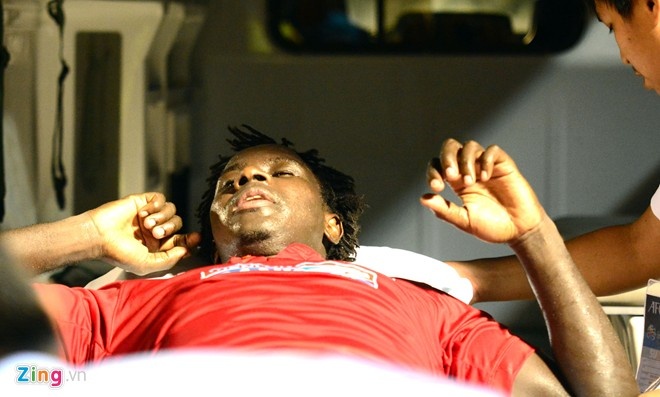 | Abass gần như bất tỉnh khi được đưa lên xe cấp cứu. Ảnh: Nguyễn Quang. |