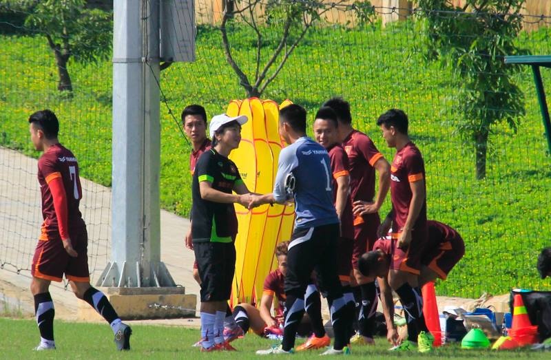 Buổi tập kín của ĐT Việt Nam bắt đầu lúc 9h. HLV Miura chỉ cho phóng viên tác nghiệp trong 15 phút khởi động đầu tiên.