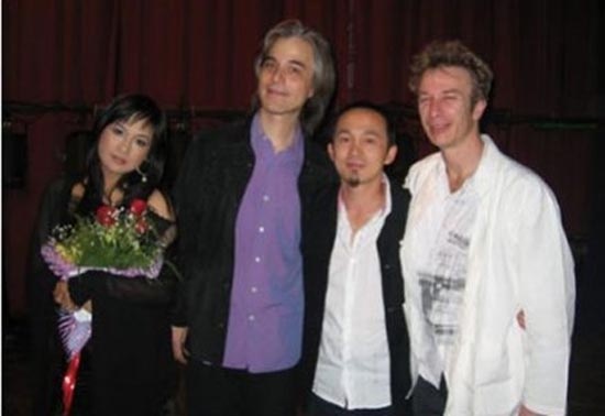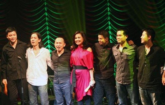 | Quốc Trung trực tiếp đệm đàn cho Thanh Lam hát trong một chương trình lớn. |