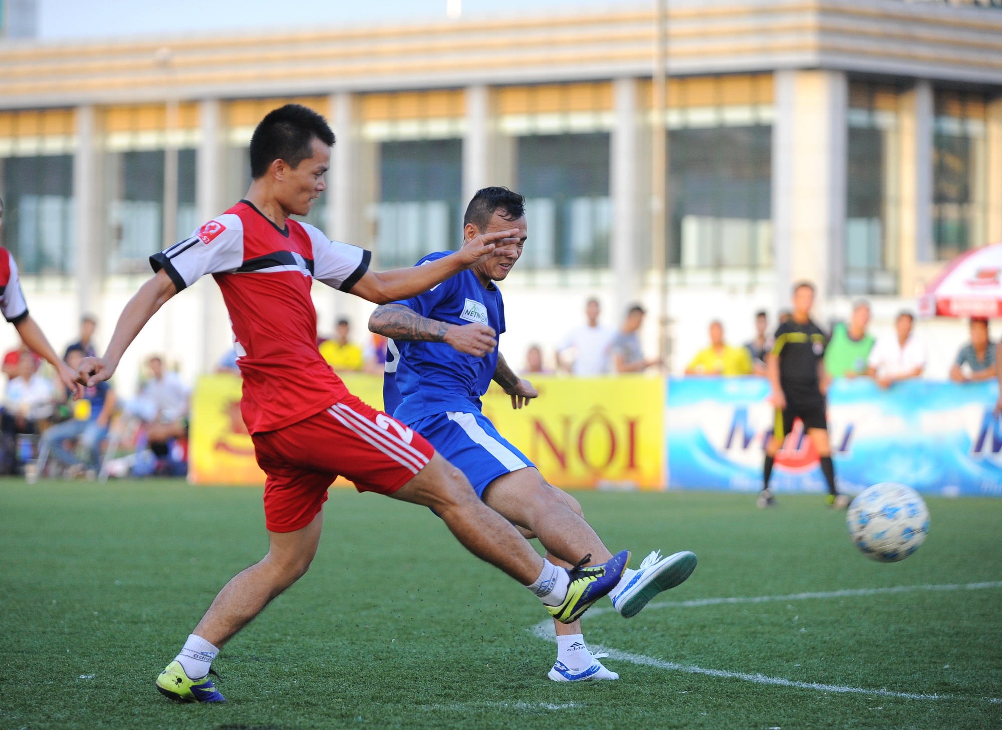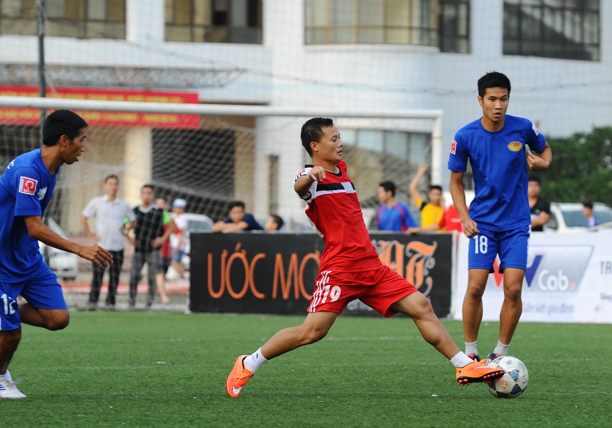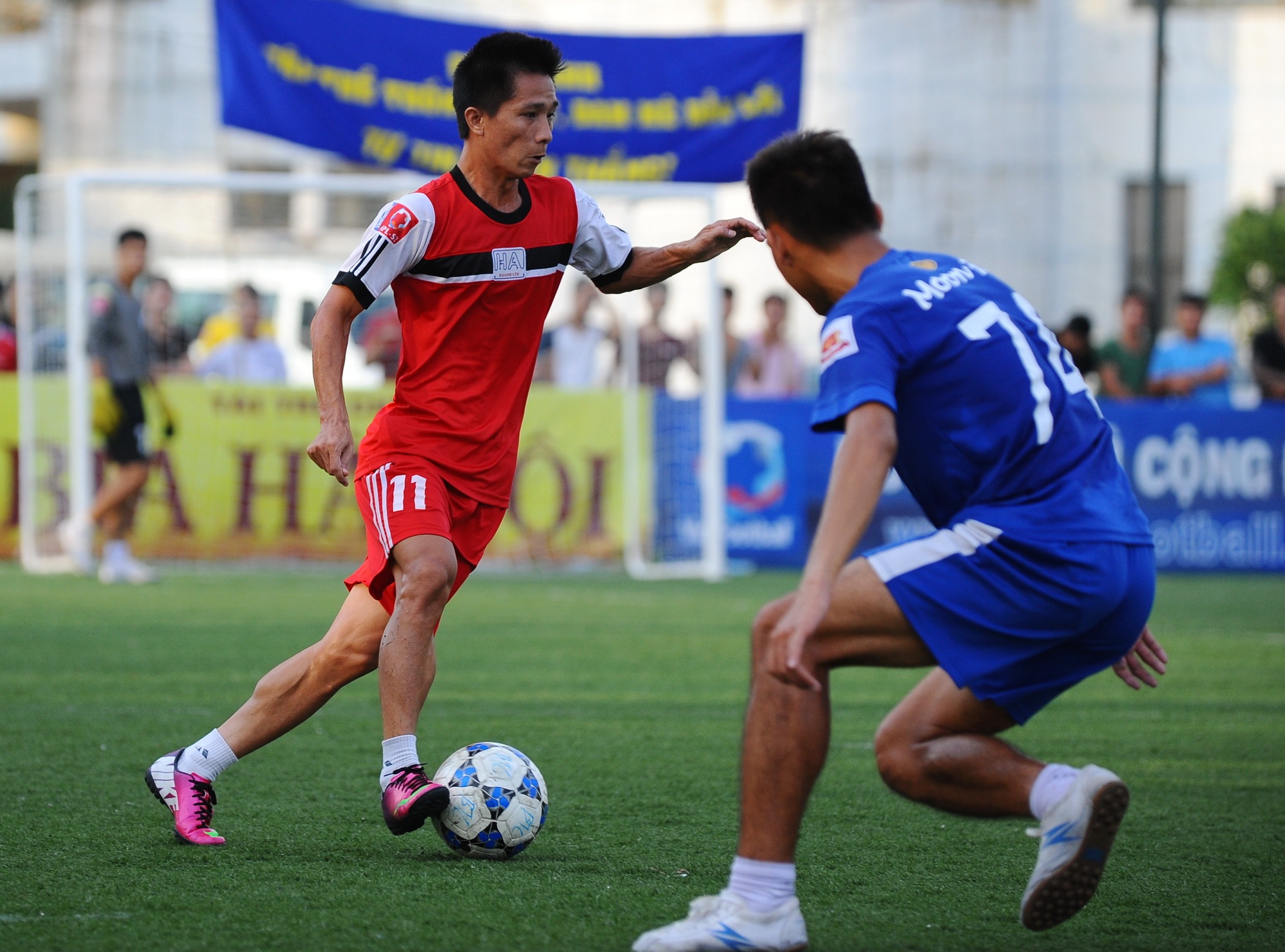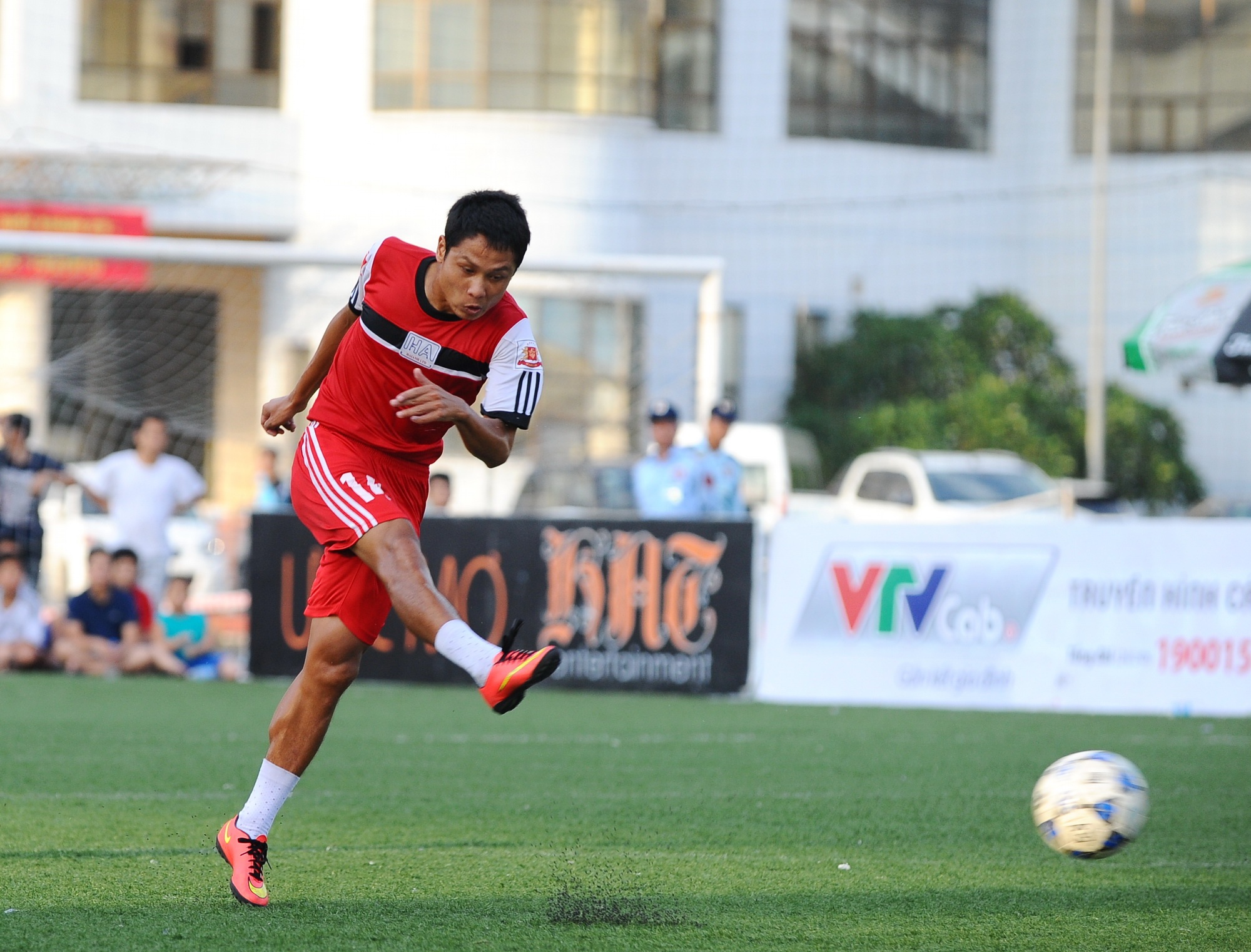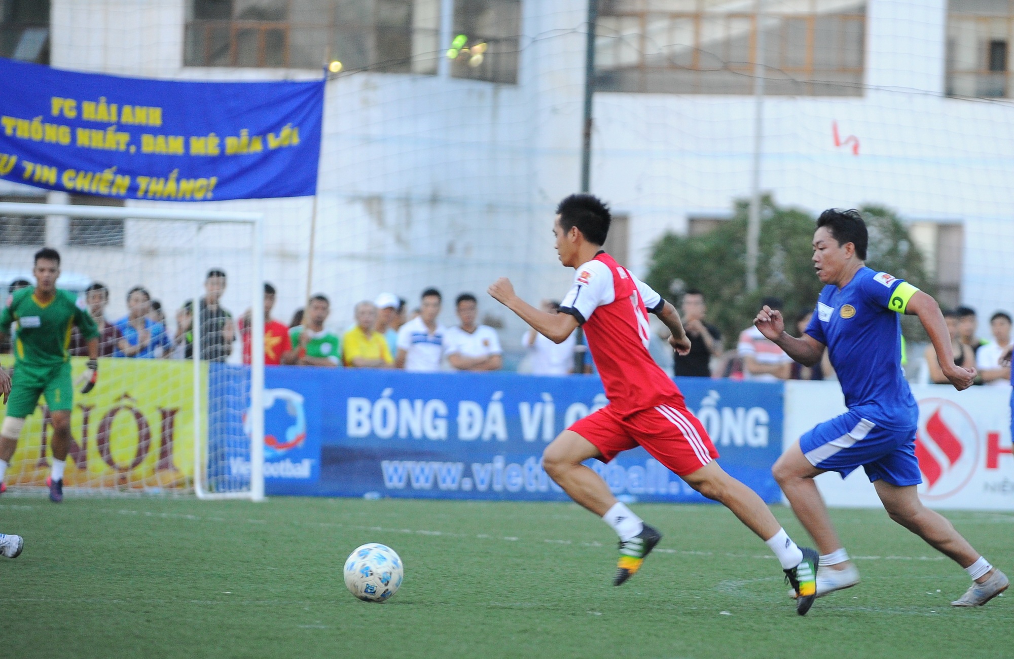 | Cựu đội trưởng U23 Việt Nam Phạm Thành Lương (số 19) thi đấu xông xáo trong màu áo Hải Anh FC. Xuất hiện gần như ở tất cả các điểm nóng trên sân, ''Sóc nhỏ'' Thành Lương thu hút được sự cổ vũ cuồng nhiệt từ khán giả có mặt tại SVĐ Bộ Công An. |