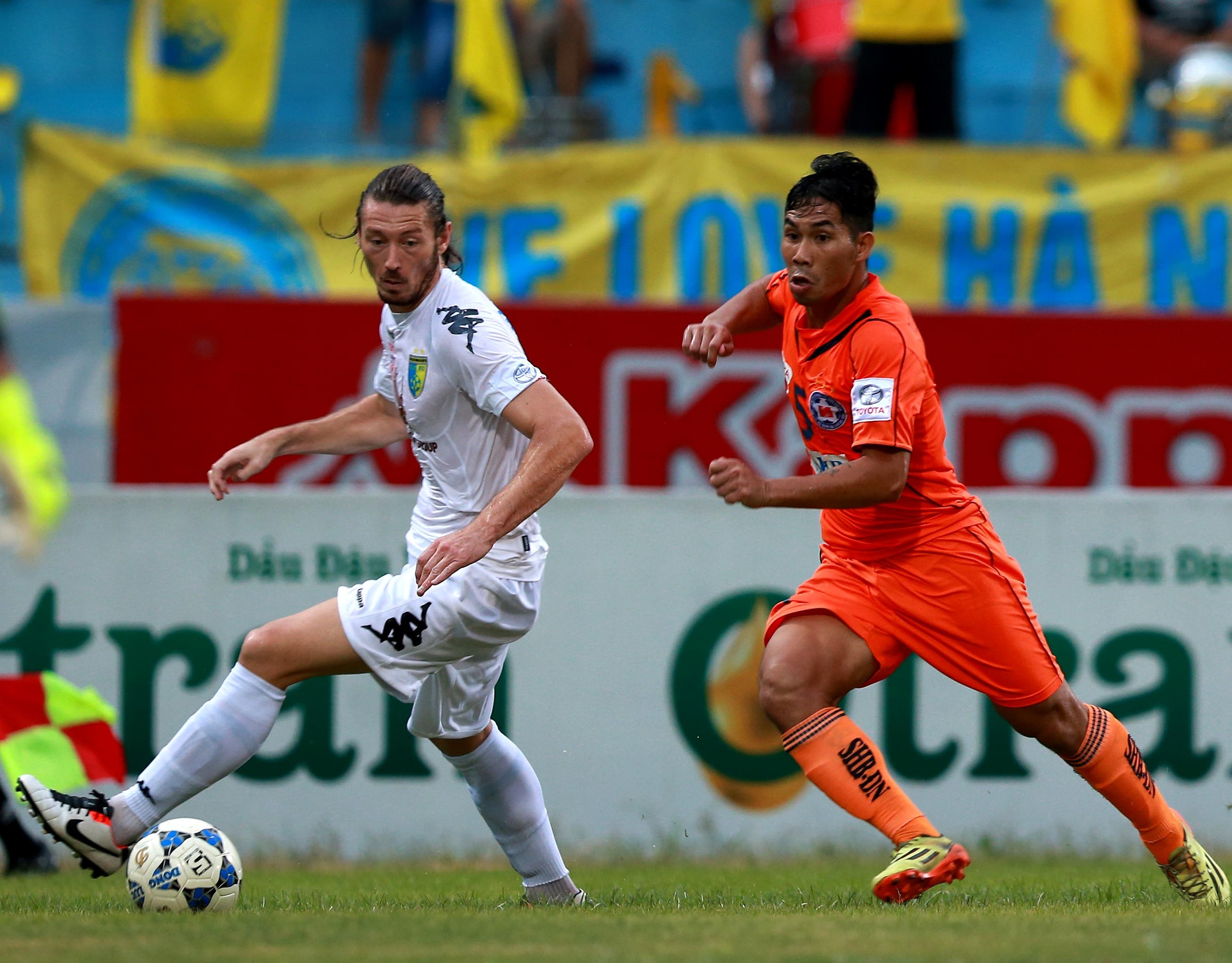 | Dù được cho là "người cùng một nhà", cả Hà Nội T&T lẫn SHB.Đà Nẵng đều thi đấu sòng phẳng, quyết liệt. Đội chủ nhà sử dụng hai ngoại binh Victor Omarzabal và Antoine Gouard, trong khi đội bóng sông Hàn tiếp tục đặt niềm tin vào bộ đôi Perez và Fraser trên hàng công. |
