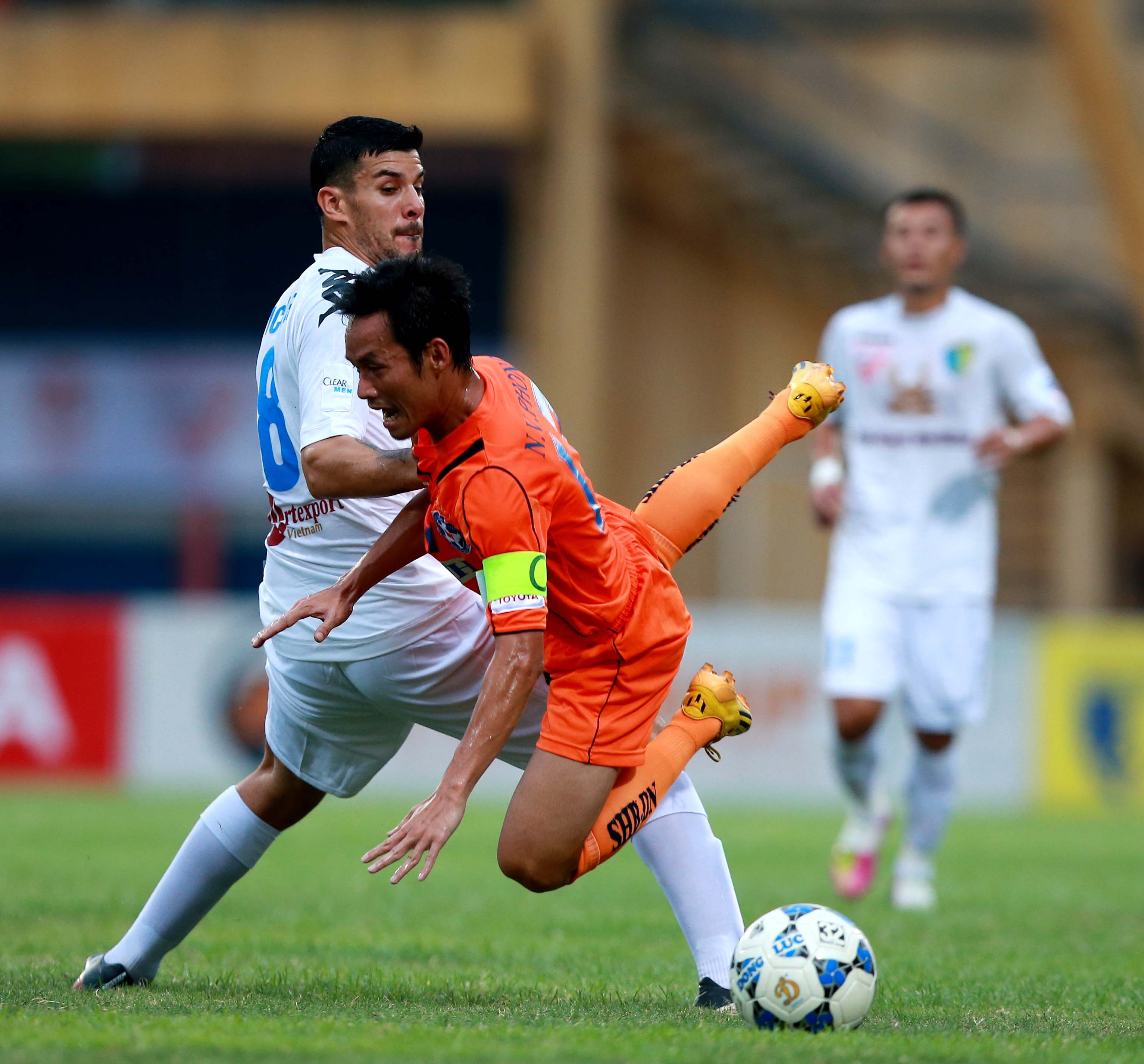 | Nguyễn Vũ Phong và Nguyễn Văn Quyết là hạt nhân trong lối chơi tấn công của hai đội. Văn Quyết là người ghi bàn gỡ hòa 1-1 cho Hà Nội T&T ở lượt đi nhưng anh không thể tái hiện điều đó ở lượt về. Nỗ lực của đội chủ nhà được đền đáp ở phút 48 khi Hoàng Vũ Samson ghi bàn trên chấm 11 m, giúp đội bóng Thủ đô vươn lên dẫn 1-0. |