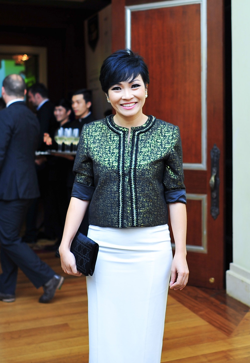 | Nữ ca sĩ Bảo Thy mặc kín đáo đi sự kiện. |