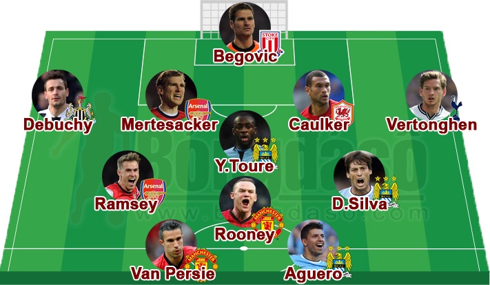 Jan Vertonghen (Tottenham): Được bố trí ở vị trí hậu vệ trái, Vertonghen không khiến HLV Villas-Boas thất vọng. Ngoài khả năng phòng ngự hiệu quả, anh còn mang tới cho hàng công Tottenham 3 cơ hội có thể ghi bàn. Đáng tiếc là Gà trống chỉ có được 1 điểm trước Everton.
