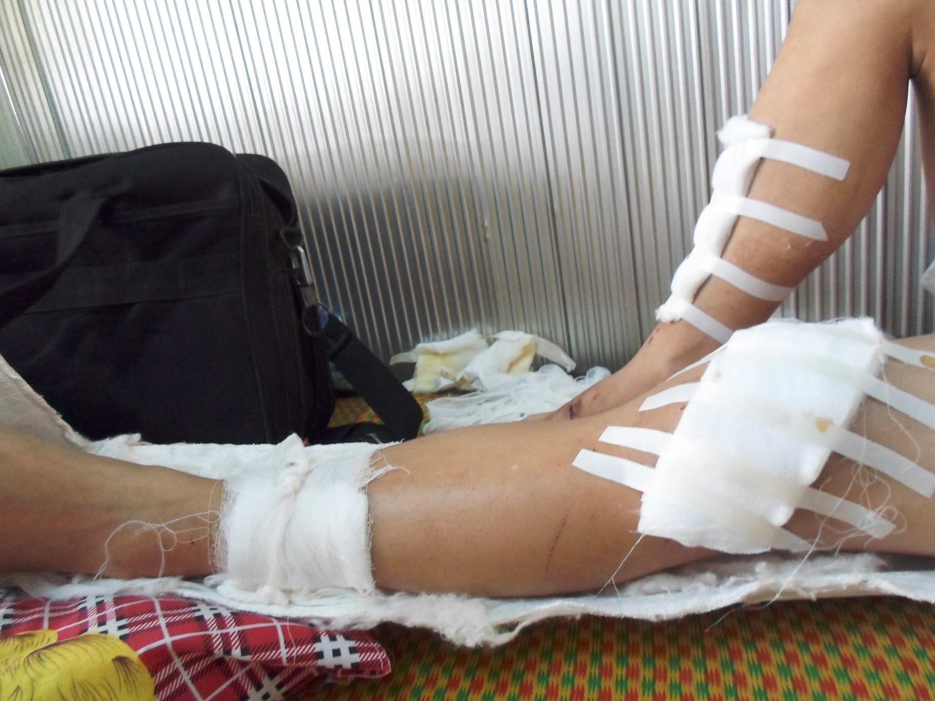 | Nguyễn Chiến Sỹ bị chém 9 nhát, bị đứt gân chân, mẻ xương đùi. |