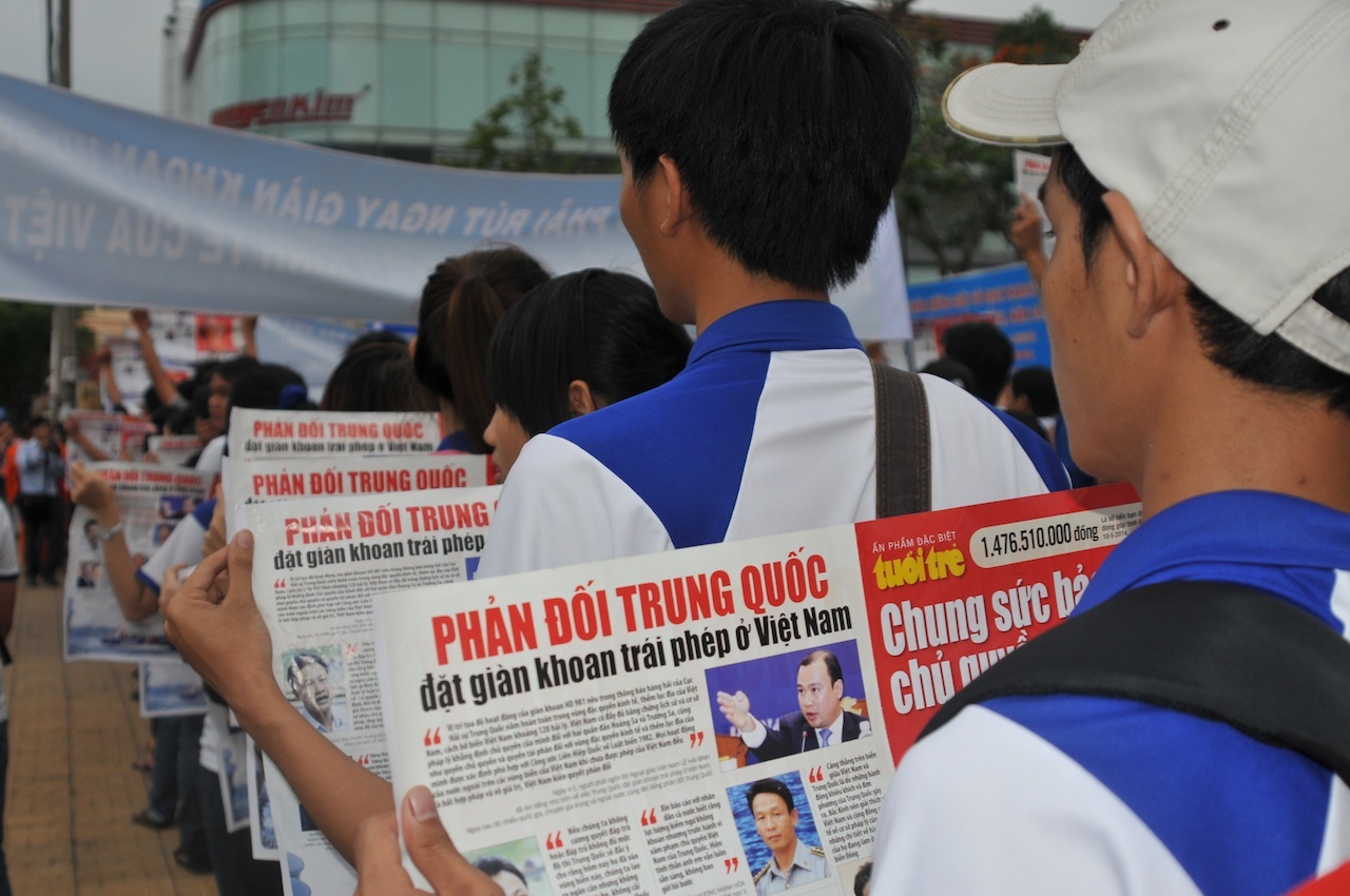 Trong cơn mưa nhẹ chiều 12/5, tại Cần Thơ, hàng nghìn người đã tập trung tại công viên Lưu Hữu Phước (quận Ninh Kiều, TP Cần Thơ) mít tinh phản đối Trung Quốc đặt giàn khoan HD- 981 trái phép trong vùng đặc quyền kinh tế, thềm địa của Việt Nam. Họ hô vang khẩu hiệu “Hoàng Sa, Trường Sa là của Việt Nam”; “yêu cầu Trung Quốc hãy đưa giàn khoan HD-981 ra khỏi vùng đặc quyền kinh tế, thềm lục địa của Việt Nam”; “hành động của Trung Quốc là phi lý, ngang ngược và không tôn trọng luật pháp Quốc tế”… |
