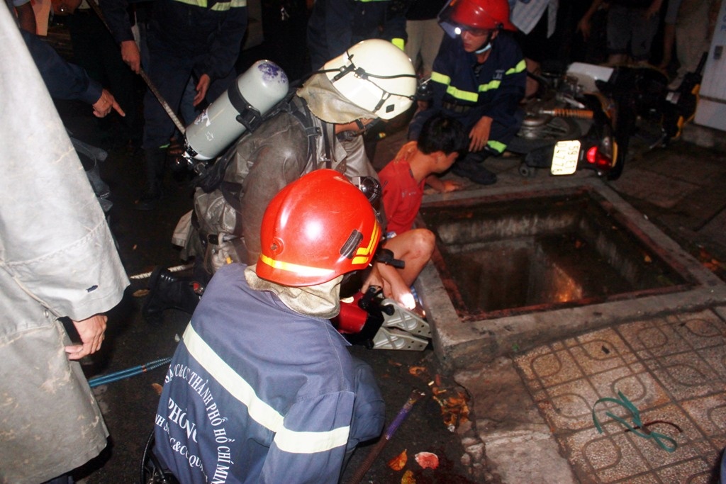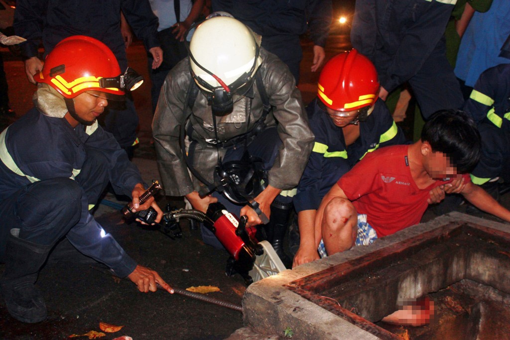 Thanh niên dính chặt vào miệng cống hi hữu ở Sài Gòn