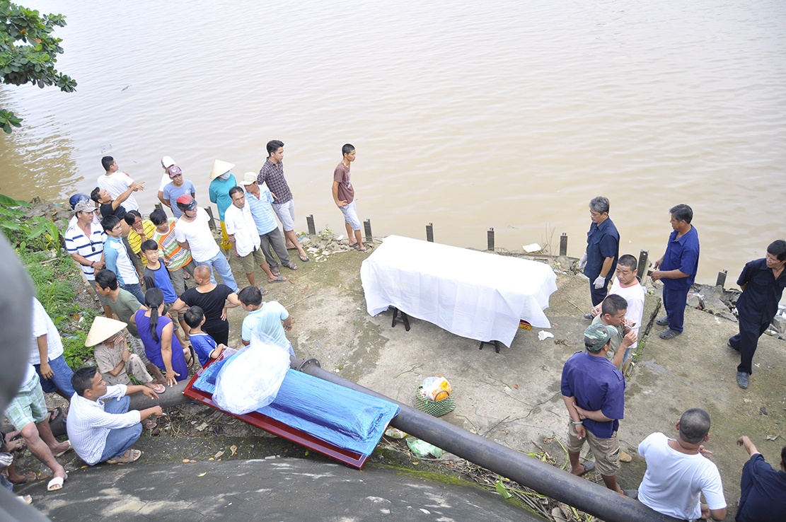| Lực lượng chức năng tổ chức khâm liệm cho nạn nhân. Ảnh: Ngọc An |