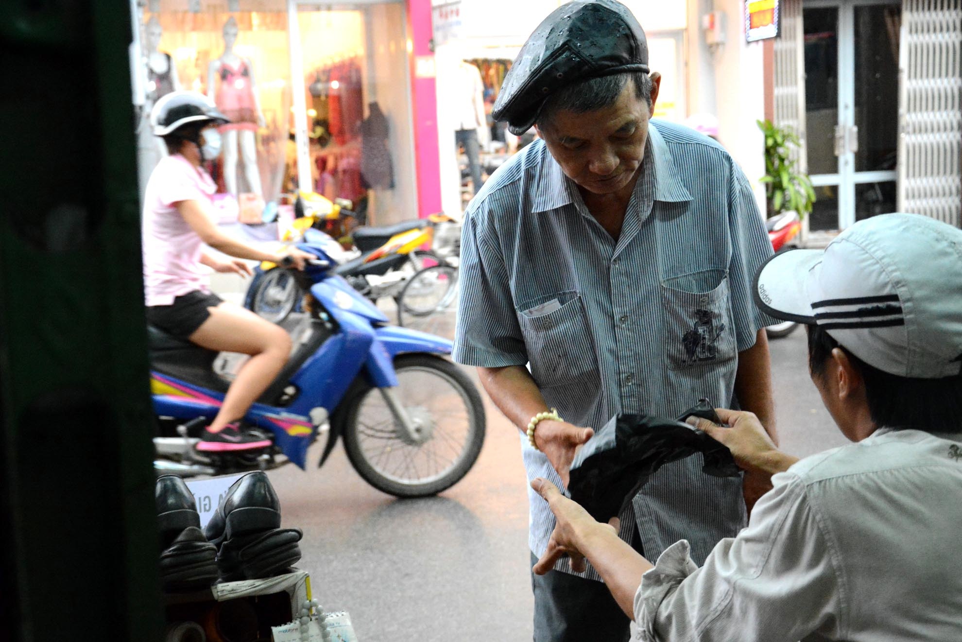 | Ông Dương Văn Cường chia sẻ, làm nghề bán vé số 2 năm nay, hàng ngày, cũng như nhiều người khác ông phải đi bộ khắp nơi, từ sáng đến tối. Mỗi lần dép hư ông đều ghé nhờ anh Bình sửa giùm. "Nếu Sài Gòn còn có nhiều người như chú ấy thì những lao động nghèo như chúng tôi cũng đỡ và cảm thấy ấm lòng", ông Cường cho hay. |