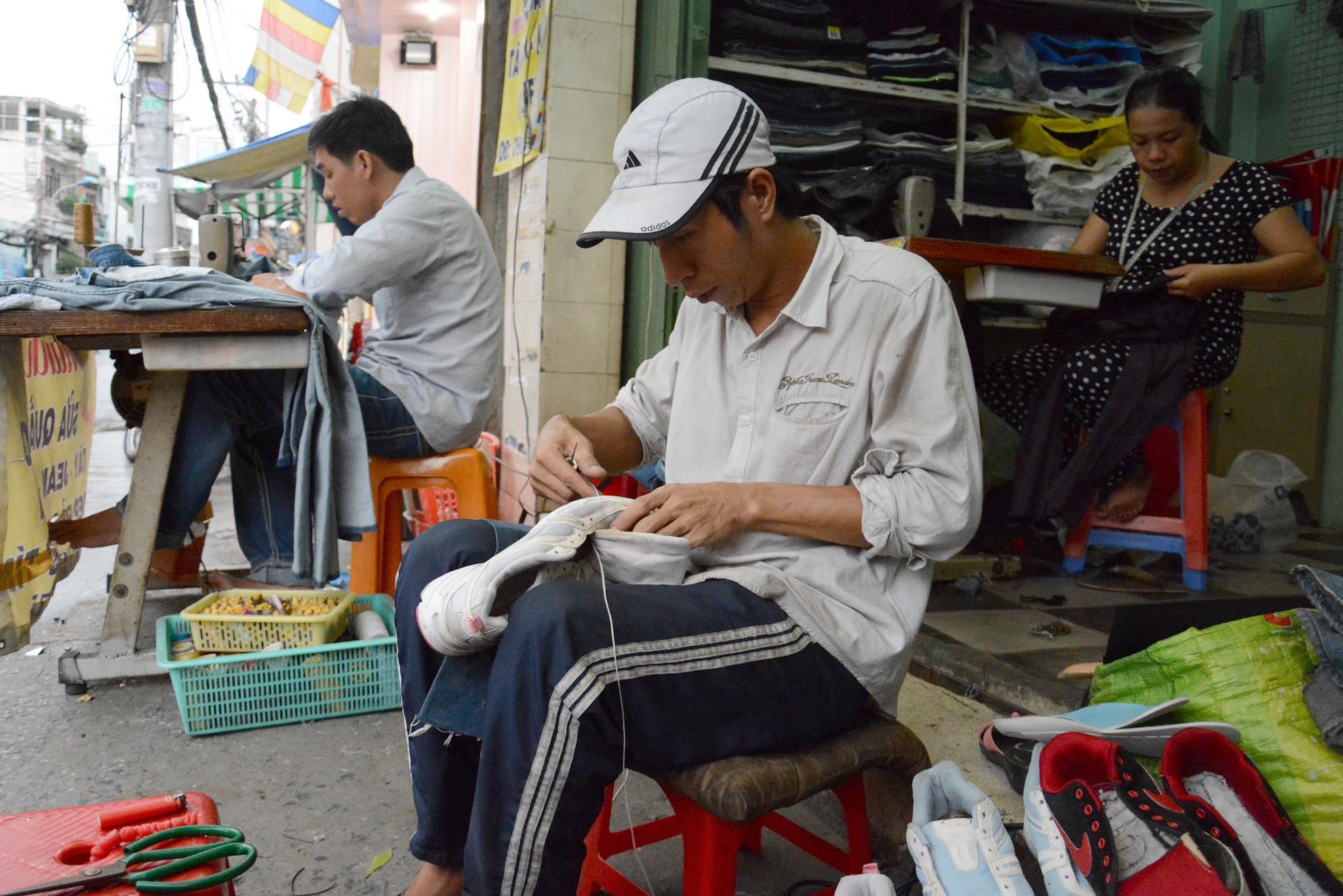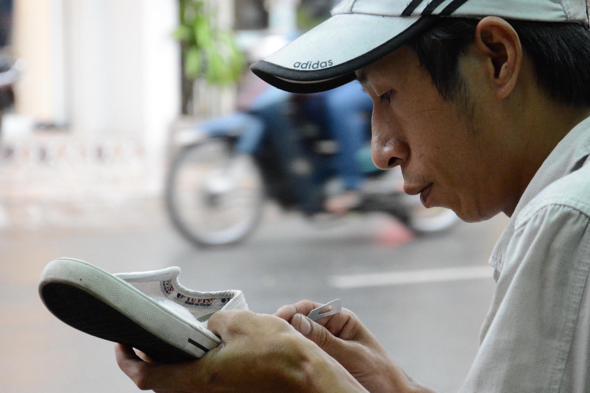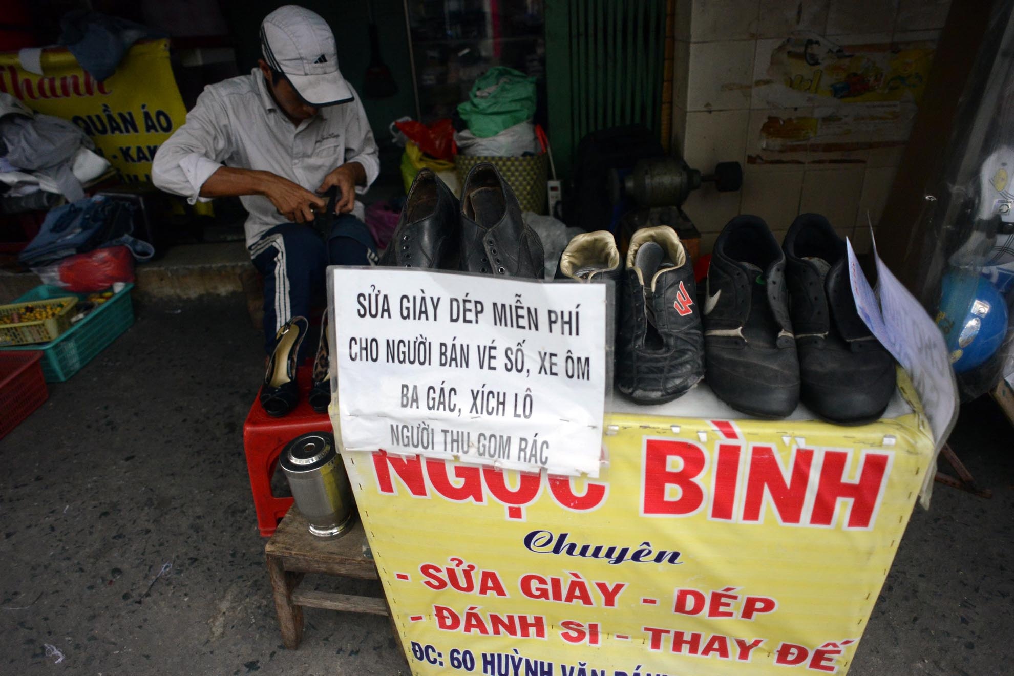 Thanh niên nghèo sửa giầy dép miễn phí ở Sài Gòn