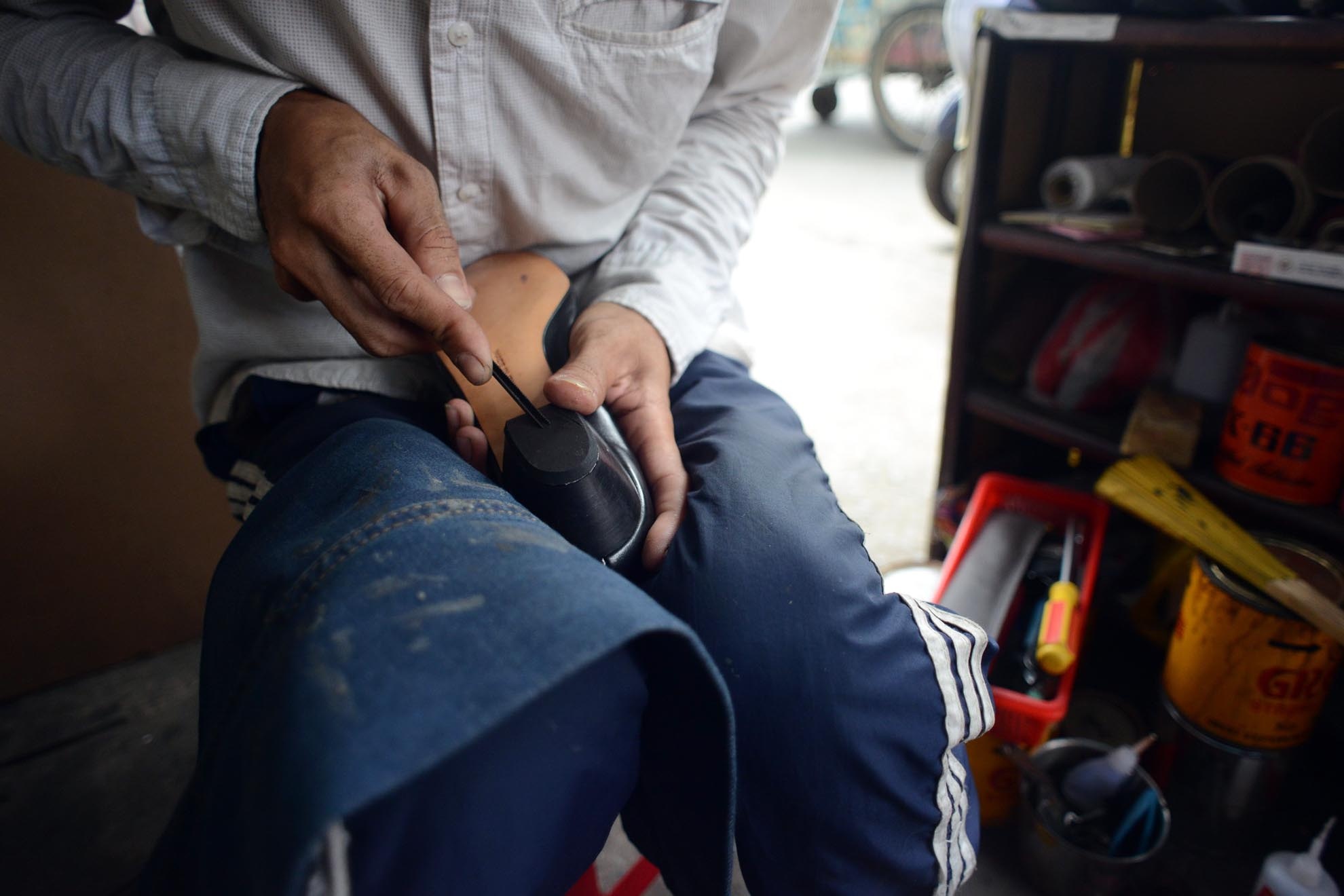 | Còn người thợ giày có tấm lòng thơm thảo chia sẻ: "Cuộc sống phía trước đang còn nhiều vất vả, chưa biết mưu sinh với nghề này được bao lâu nữa, nhưng nếu còn gắn bó với những cây kim, mũi chỉ, đôi giày cũ ngày nào thì tôi luôn sẵn sàng giúp đỡ những lao động nghèo với tất cả tâm sức của mình". |