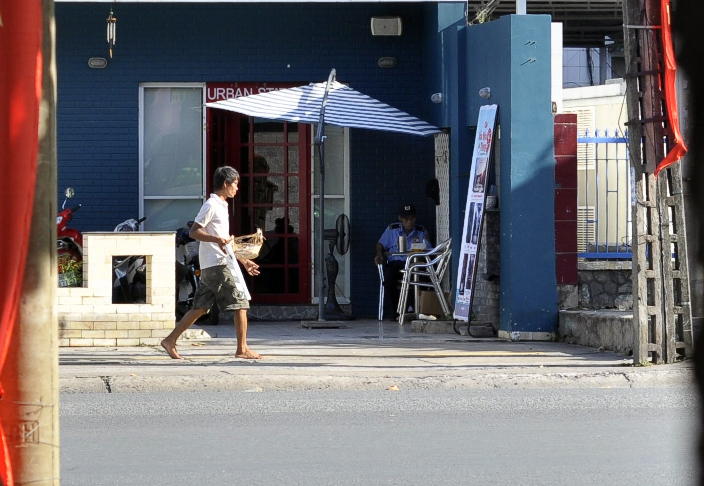 Mỗi khi thấy lực lượng chức năng, "cái bang" vội vã rời vị trí. Anh ta thường vào các con hẻm gần đó để trốn hoặc đến giao lộ khác tiếp tục hành nghề.