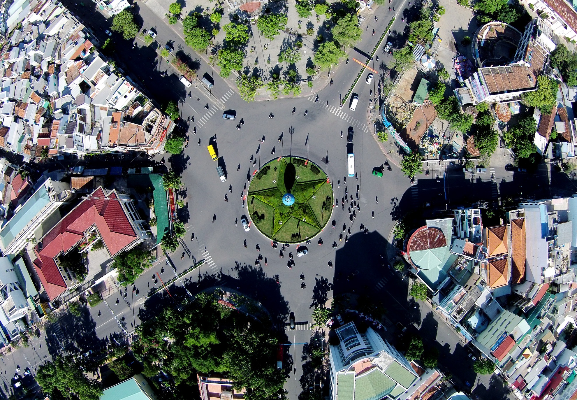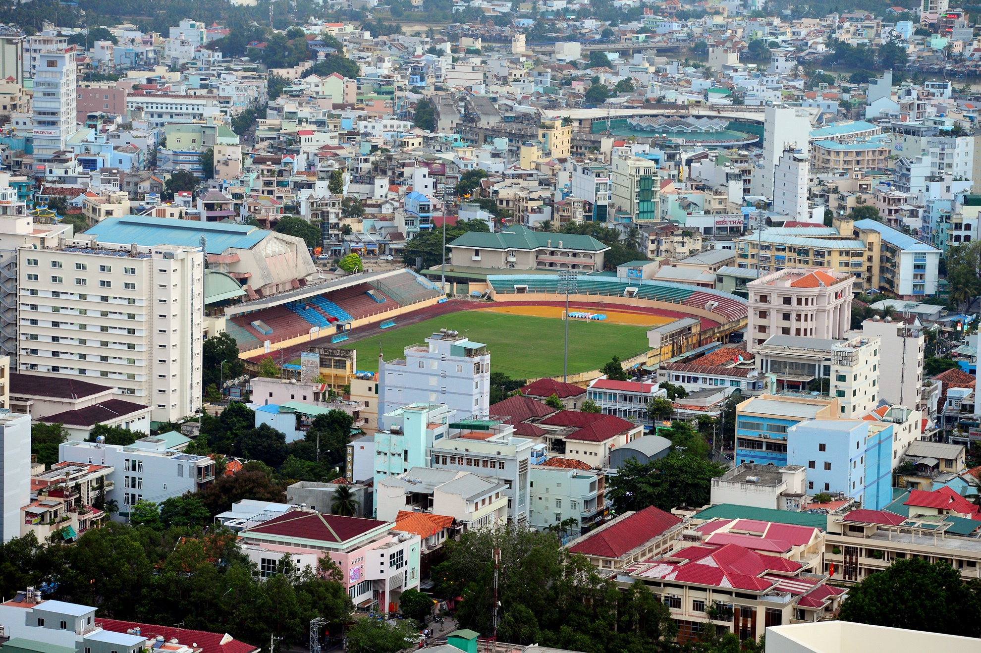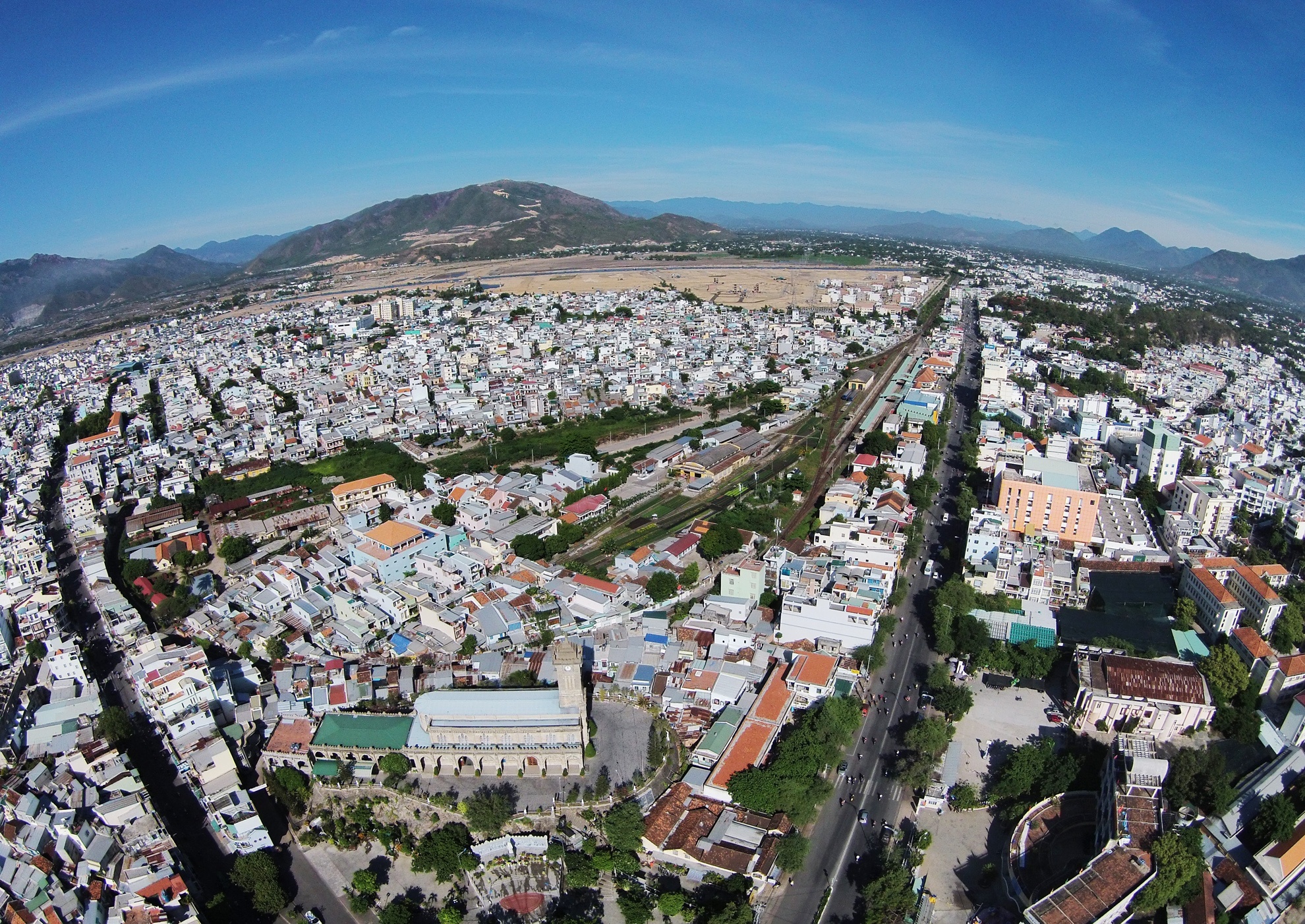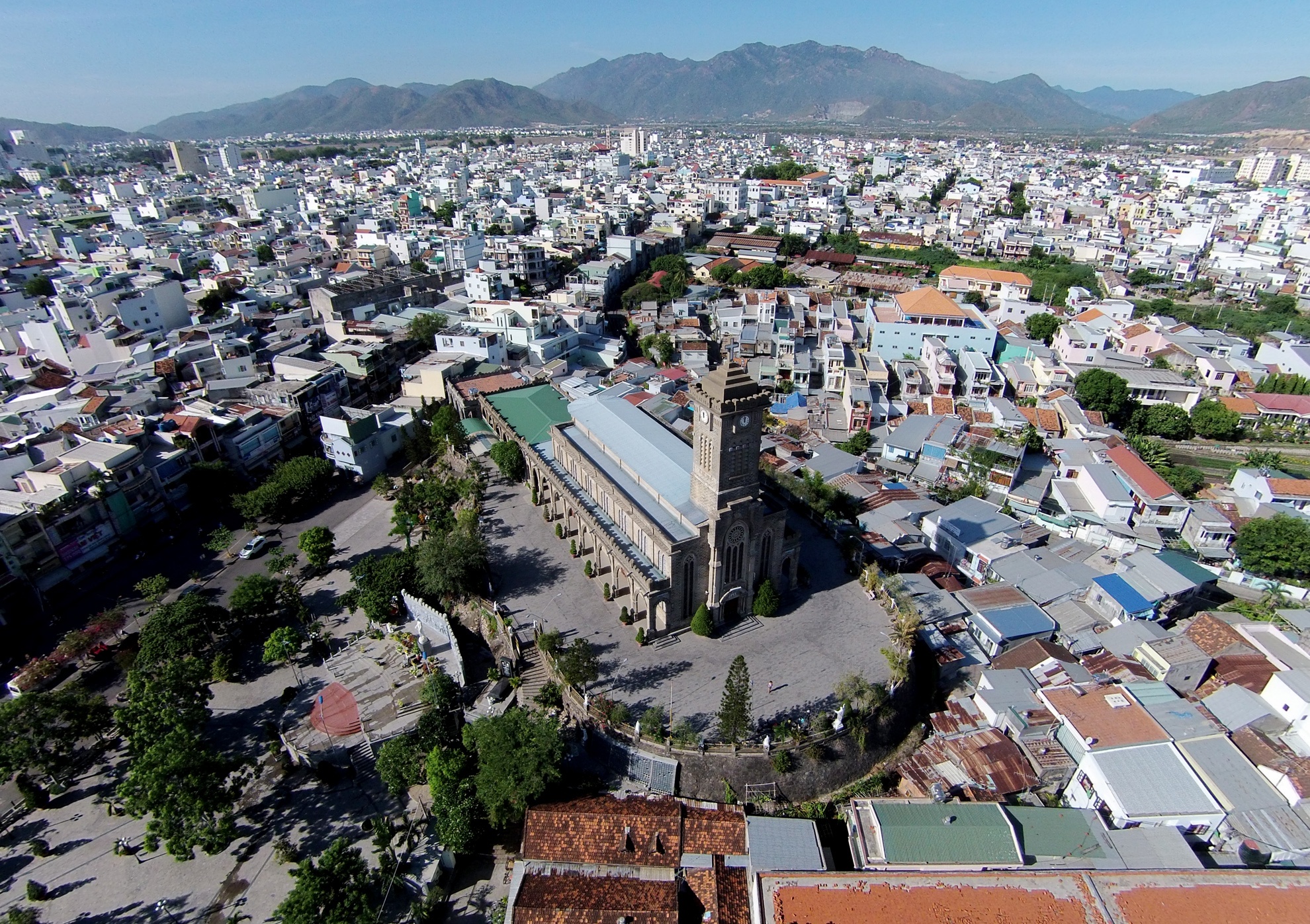 Từ độ cao 200 m, các công trình như chợ Đầm, sân vận động, nhà thờ, chùa, tháp bà Ponagar và nhiều danh thắng khác của thành phố Nha Trang (Khánh Hòa) hiện lên ở góc nhìn khác lạ.