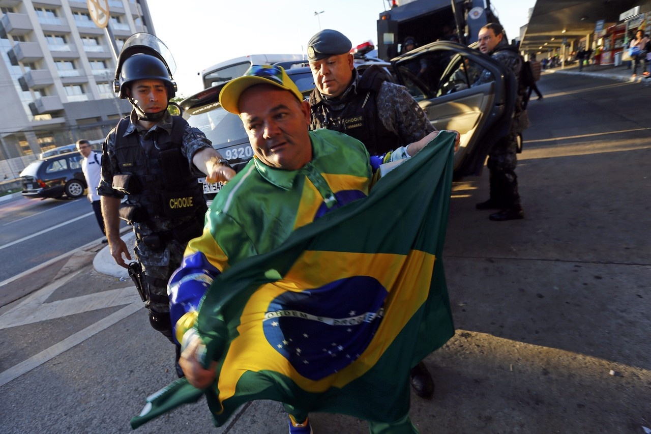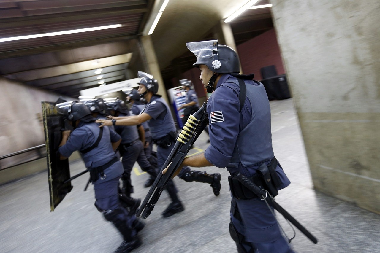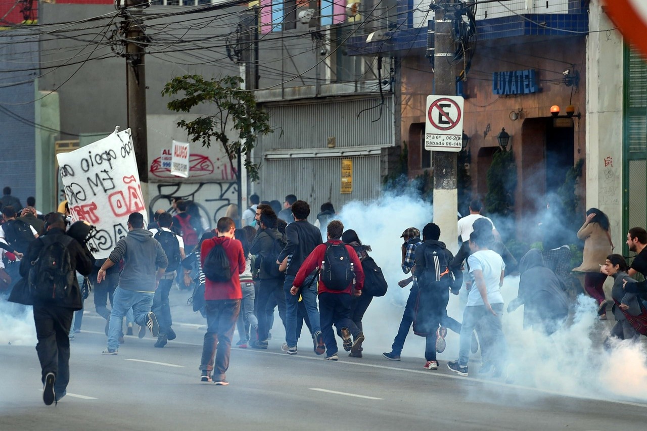 Phía cảnh sát Brazil đã phải dùng tới lựu đạn hơi cay, dùi cui và khiên để trấn áp đám đông tại các nhà ga xe lửa.