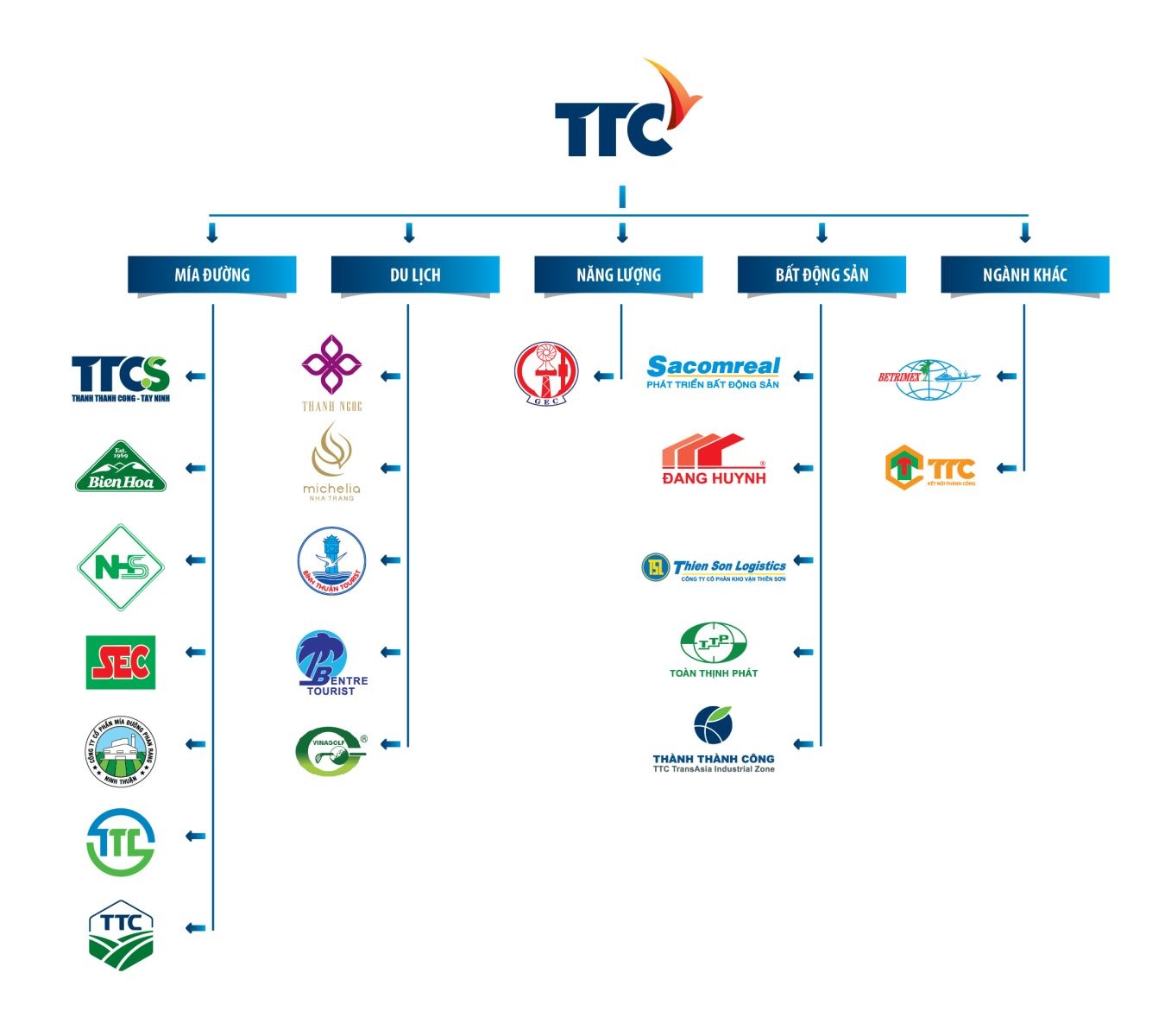 Đối với mảng bất động sản, TTC hiện có 5 công ty thành viên là Sacomreal, Toàn Thịnh Phát, Khu công nghiệp Thành Thành Công (trước đây là Bourbon An Hòa), Công ty Đặng Huỳnh và Công ty Kho vận Thiên Sơn.