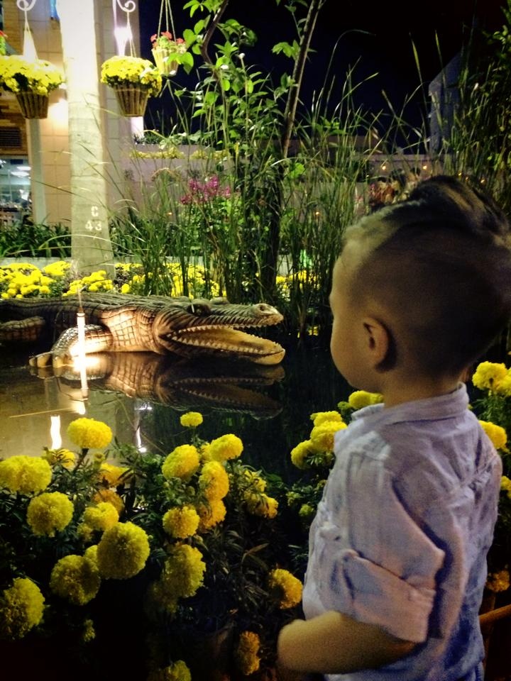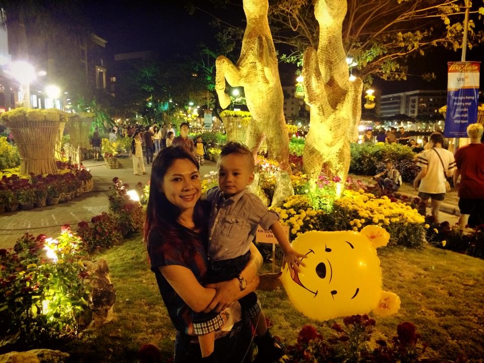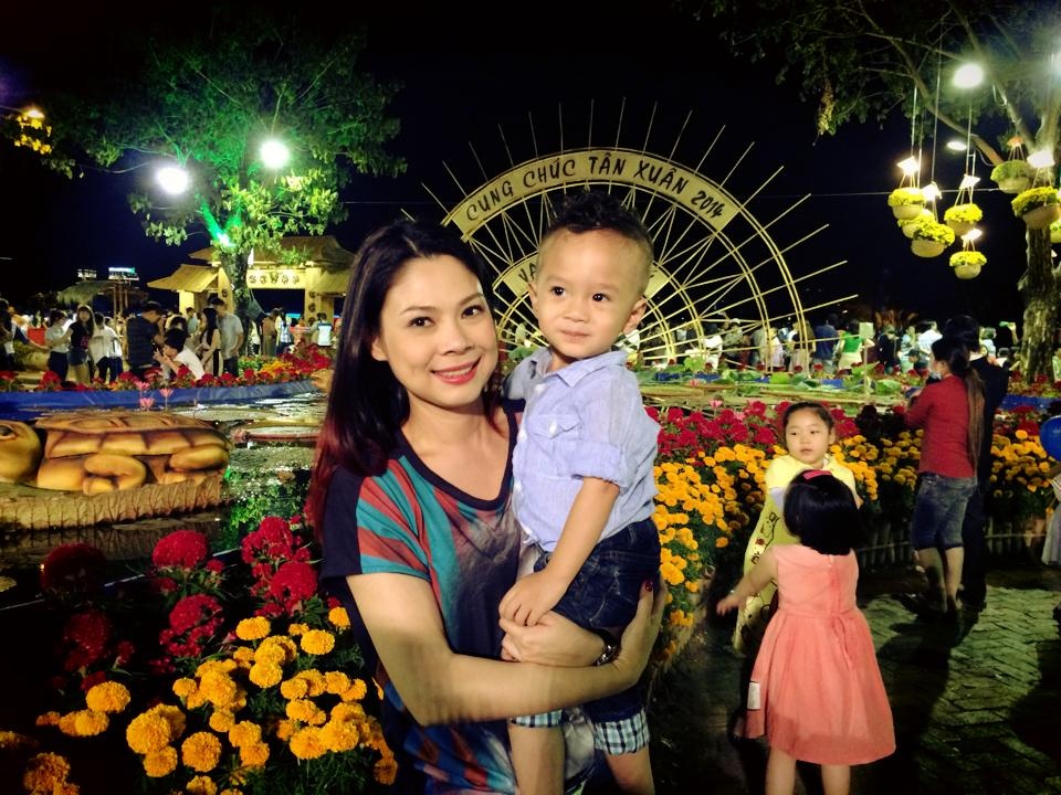 Thanh Thảo dắt con trai đi chơi chợ hoa ngày Tết