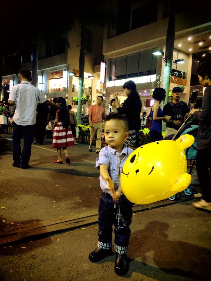 Bận rộn với các show diễn trong dịp cuối năm nhưng búp bê của làng nhạc vẫn tranh thủ đưa cậu nhóc Jacky đi dạo phố, ngắm đường hoa rực rỡ.