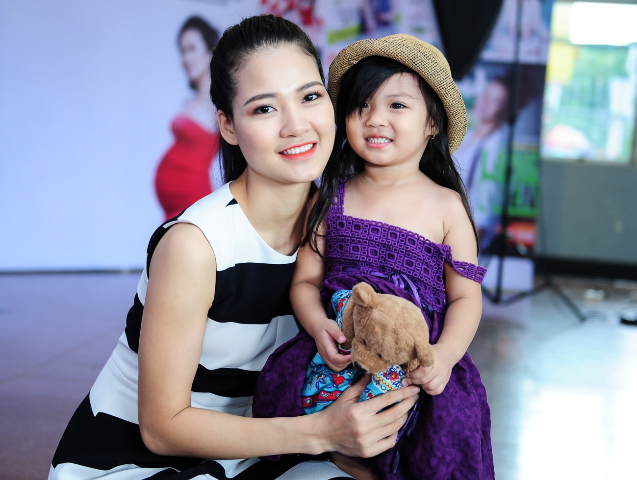 | Hoa hậu Thể thao Trần Thị Quỳnh cũng đưa con gái đến sự kiện. Người đẹp Hải Phòng tự hào khoe, dù chưa được 3 tuổi nhưng con gái đầu lòng giúp đỡ bố mẹ trong công việc nhà. Cô bé rất thông minh, hiếu động. |