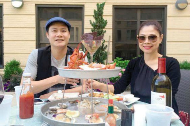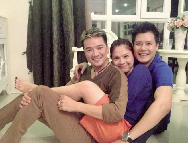 | Quang Dũng và Thanh Thảo bên cạnh người bạn chung Đàm Vĩnh Hưng. |
