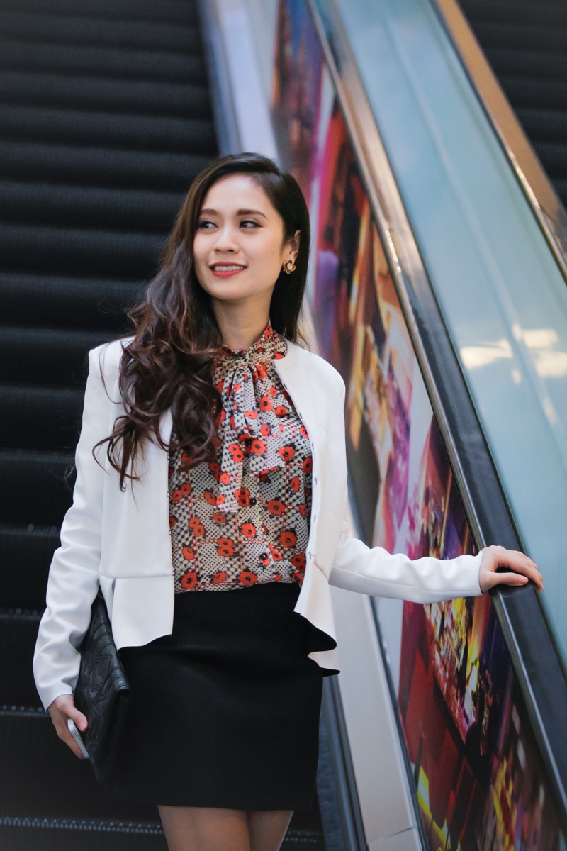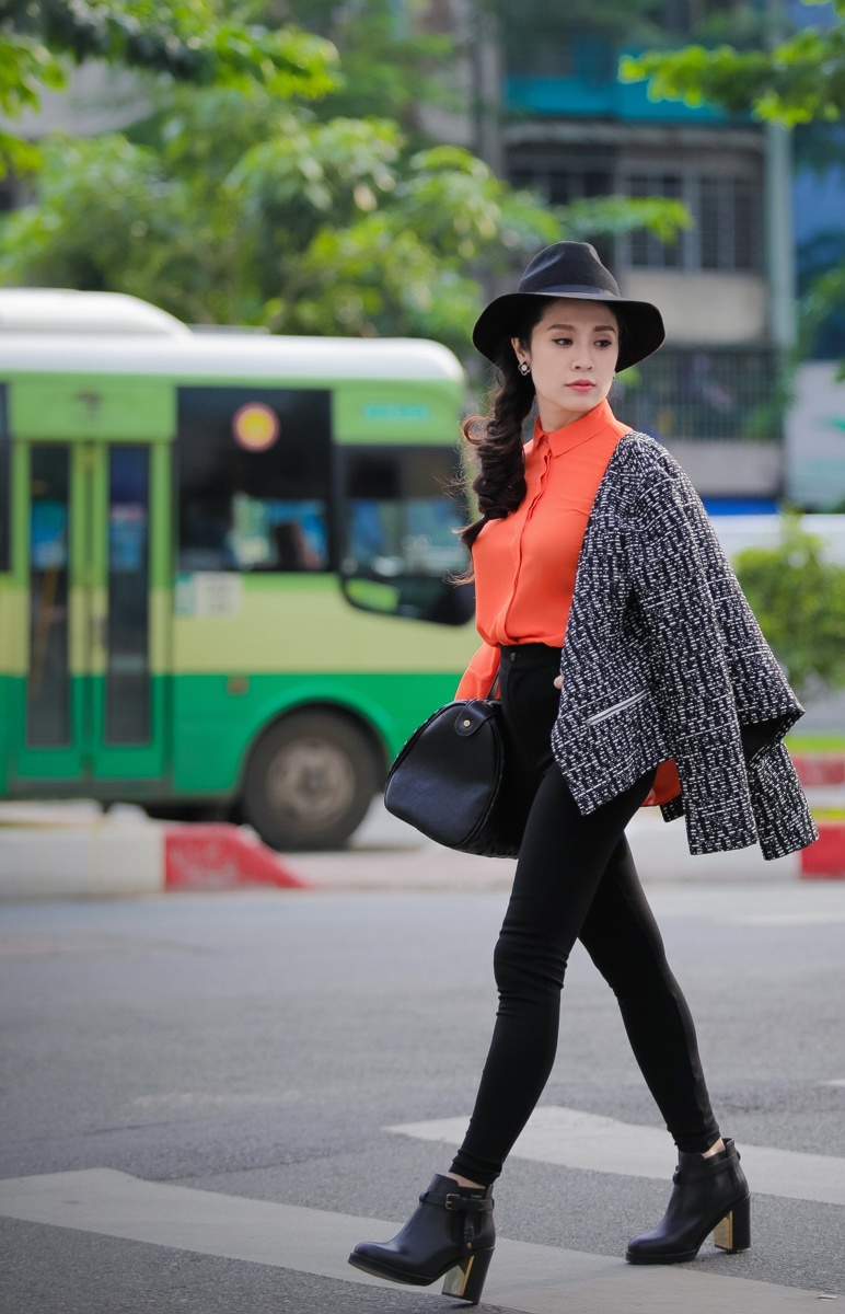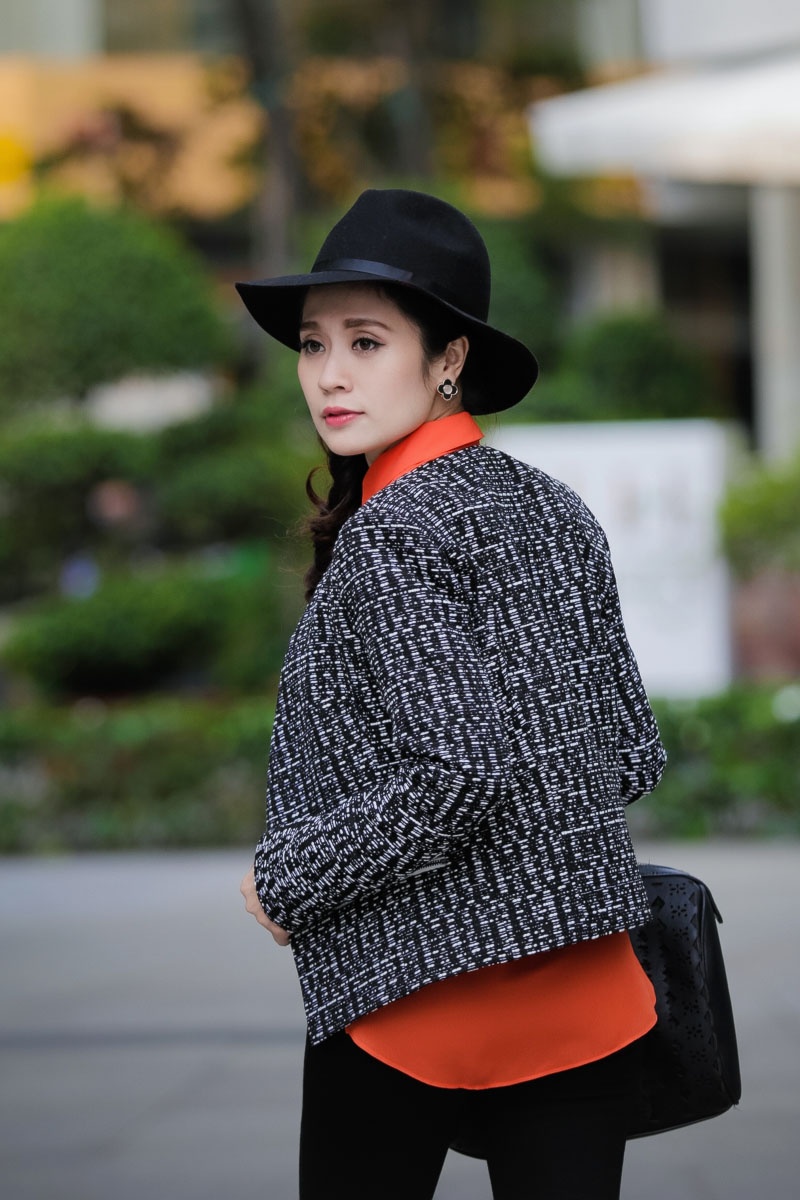 | Sau khi công việc đi vào ổn đinh, nữ diễn viên có thể yên tâm thực hiện hình ảnh mới. Người đẹp điện ảnh Việt nổi bật trên phố với trang phục thu đông thanh lịch gồm áo sơ-mi sáng màu mix ăn ý cùng quần jeans ống đứng và áo khoác dạ ấm áp. |