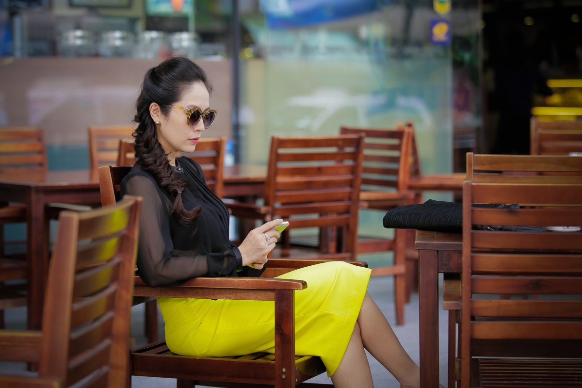 Yêu công việc và tất bật với kế hoạch làm phim mới nhưng bà mẹ một con vẫn luôn dành nhiều thời gian cho gia đình và coi đó niềm vui, là nơi giúp cô giải tỏa những mệt mỏi trong công việc. Dịp cuối tuần, diễn viên phim Mẹ chồng nàng dâu dành thời gian gặp gỡ đối tác công việc và thực hiện những hình ảnh mới. Bà mẹ một con để lộ hình xăm nơi cổ tay khi cô mải mê chụp ảnh.
