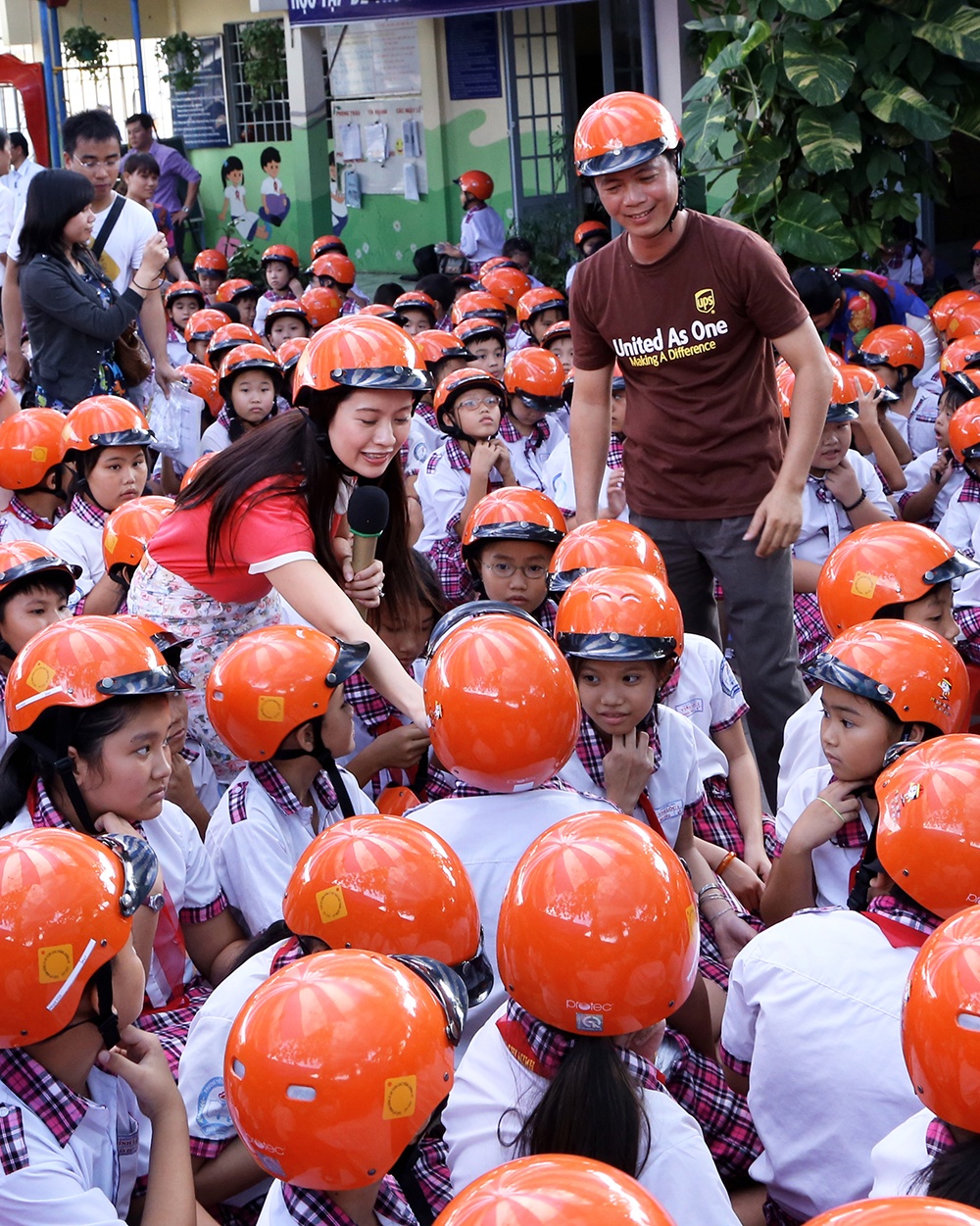 Tại buổi lễ, gần 4.000 học sinh, giáo viên của 5 trường tiểu học và trường chuyên biệt Ánh Dương trên địa bàn TP.HCM đã nhận được mũ bảo hiểm. Đây là một trong những hoạt động chính trong khuôn khổ dự án Mũ bảo hiểm cho trẻ em được thực hiện năm thứ 3 do Quỹ UPS tài trợ.