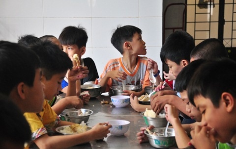 | Bữa cơm trưa của các em ở Trung tâm. Ảnh: Khánh Trung. |