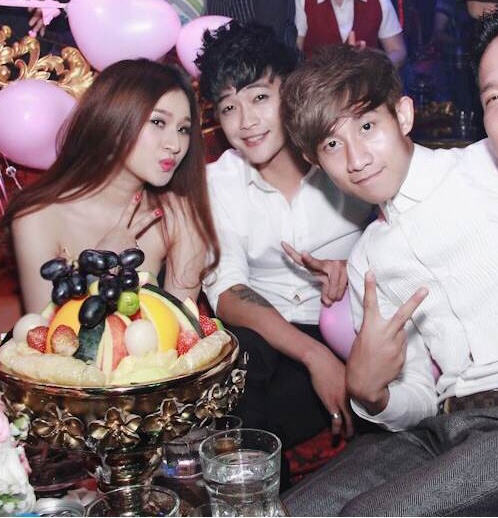 | Hai thành viên nhóm HKT rủ nhau tới chúc mừng sinh nhật của Ivy - cô bạn đóng trong MV Giá như chưa từng quen của nhóm. Đây cũng là lần đầu tiên họ cùng lộ diện sau khi Hồ Gia Hùng gặp tai nạn giao thông nghiêm trọng. |