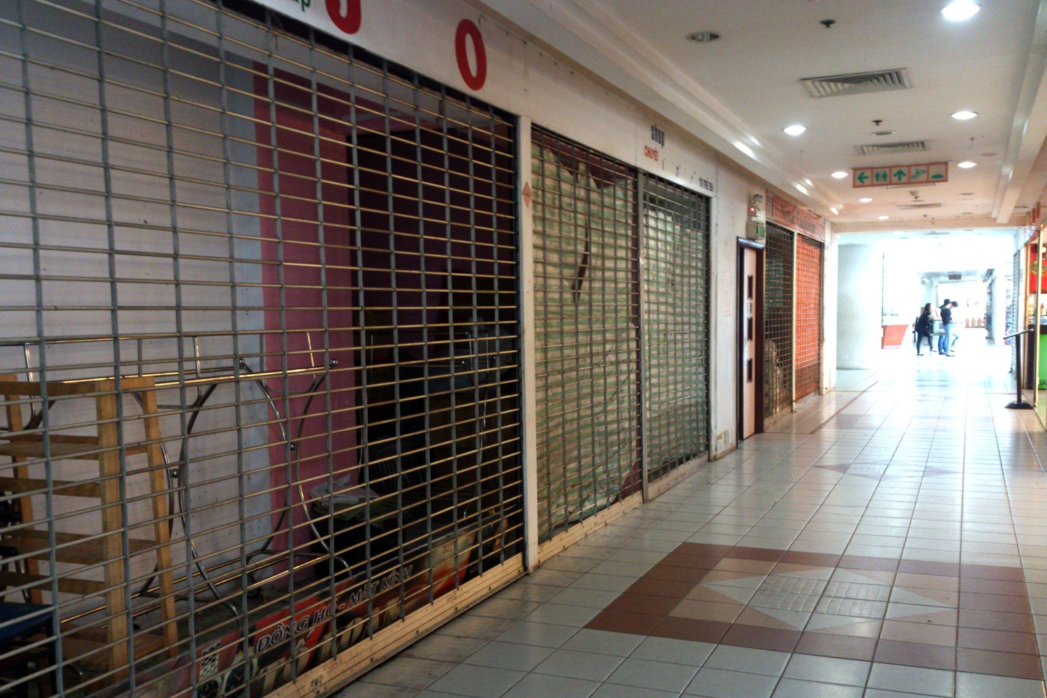 | Bên trong trung tâm thương mại không một bóng khách, chỉ vài nhân viên bán hàng đứng trò chuyện cùng nhau. Ảnh: Zen Nguyễn. |