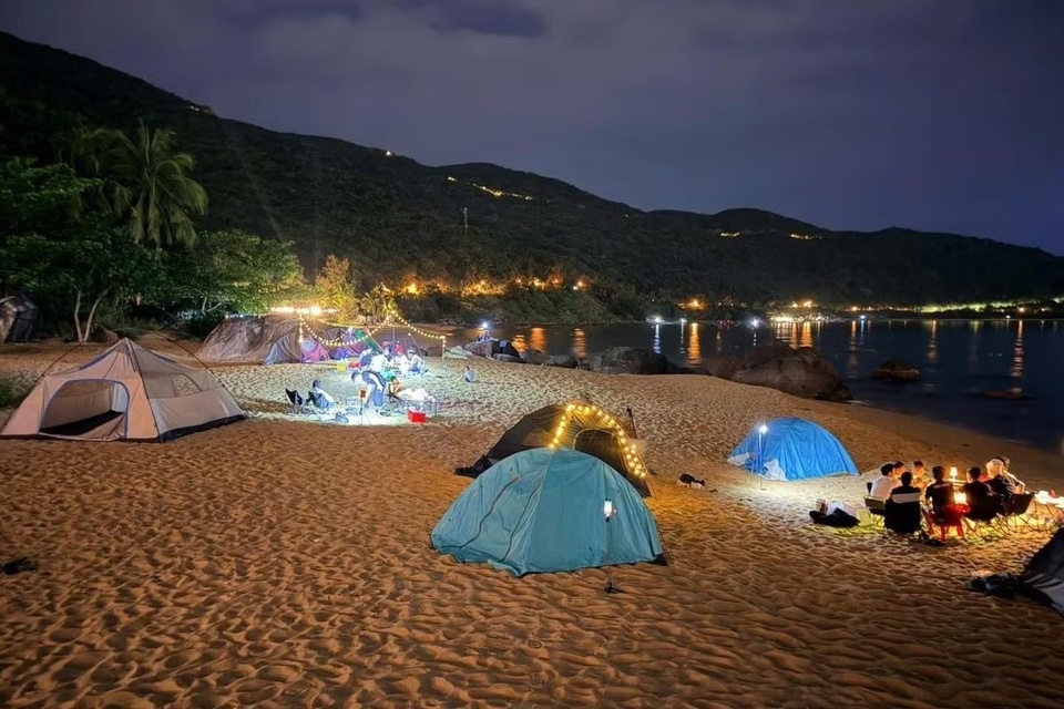 Nhiều bạn trẻ dựng lều trại về đêm ở bán đảo Sơn Trà. |