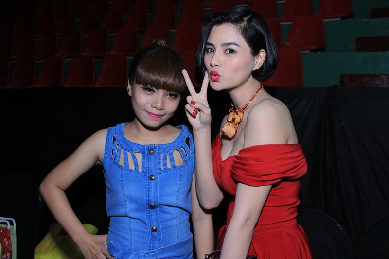 | Vũ Thu Phương chụp hình cùng huấn luyện viên Đàm Vĩnh Hưng. Cô cũng rất tin tưởng khi Thảo My chọn về đội của anh. |