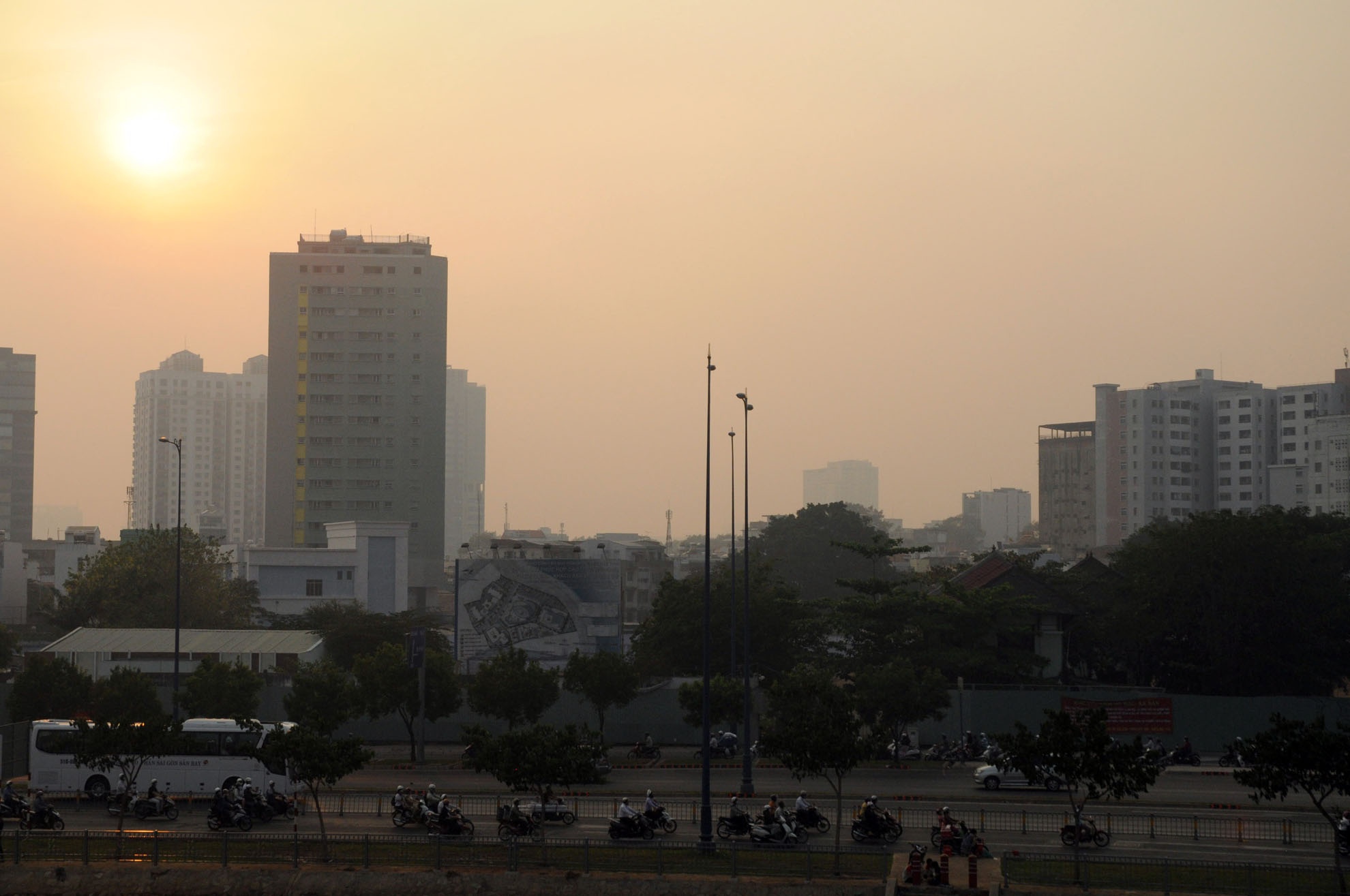 | Cách đây 6 tháng, TP HCM từng xuất hiện sương mù giữa buổi trưa. (ảnh chụp vào thời điểm sương mù xuất hiện vào tháng 10/2014). |