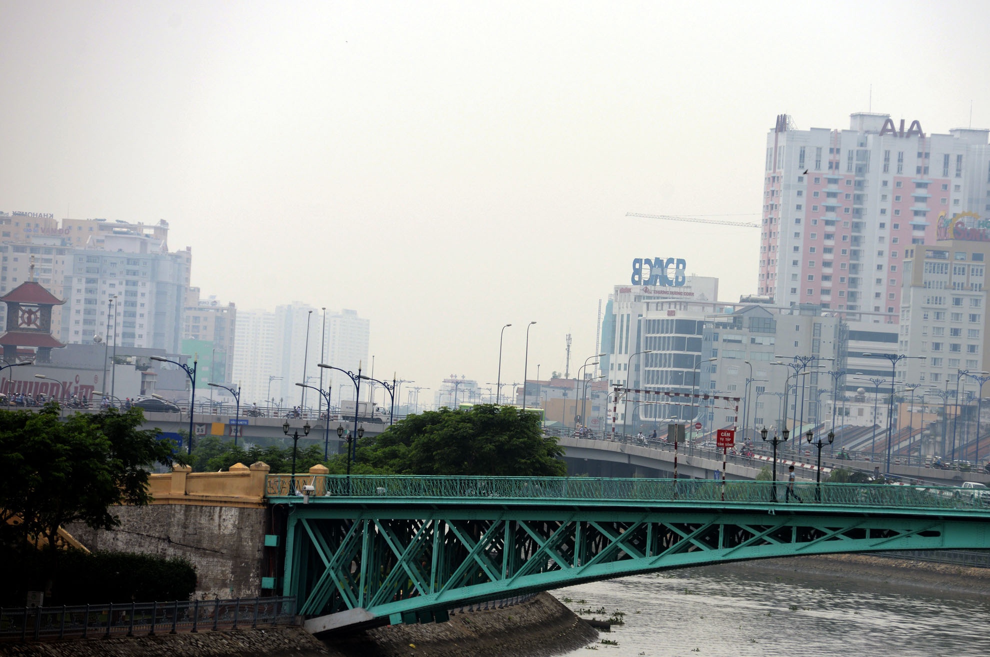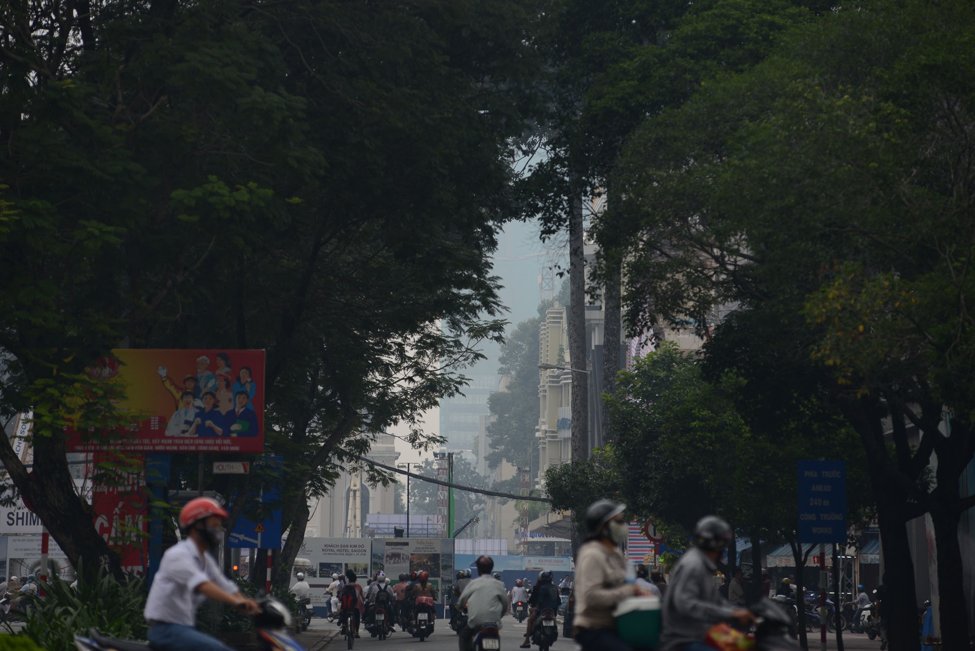 | Sương mù nhẹ ở trung tâm quận 1 (TP HCM) vào lúc 16h30. |