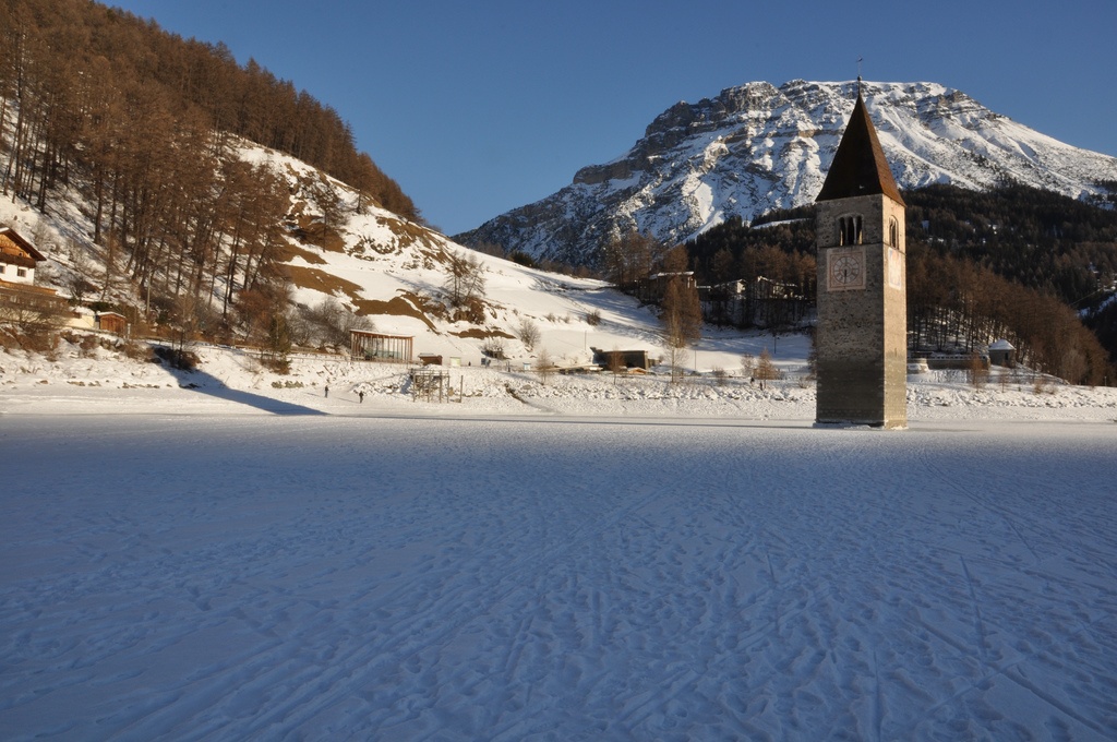 | Vào mùa đông, thị trấn Curon cũng đầy giá trị để viếng thăm như những khu trượt tuyết xuyên quốc gia như Maseben, Belpiano và Malga S. Valentino. Khu đô thị cung cấp ba khu trượt tuyết này kết nối với khu trượt tuyết ở khu đô thị Nauders của Áo nằm ở phía bắc nước Ý. Nếu vẫn chưa thật sự hài lòng với môn thể thao trượt tuyết, đạp xe đạp, đi bộ đường dài, leo núi thì du khách vẫn có thể chèo thuyền, lướt sóng...tại hai hồ nước nhân tạo Curon và Resia của khu đô thị xinh đẹp luôn sẵn sàng chào đón du khách viếng thăm. |