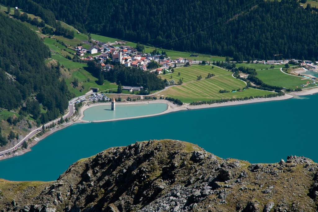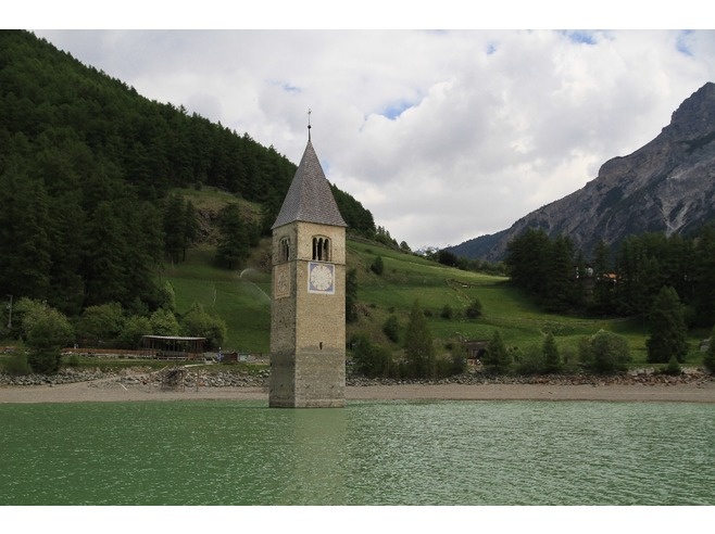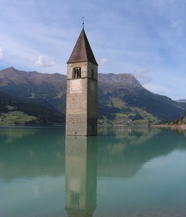 Khu đô thị Curon Venosta (Ý), nằm ở trung tâm khu vực du lịch Val Venosta, cách biên giới Áo và Thụy Sĩ không xa. Biểu tượng của Curon là tháp chuông, phần chân của tháp chuông được nhuốm một chút hồng từ nước hồ Resia.