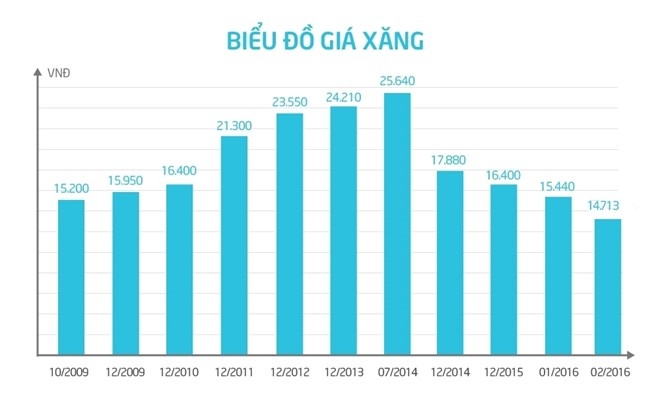 | Giá xăng Việt Nam tính đến tháng 2/2016. Đồ họa: Tuấn Dũng. |
