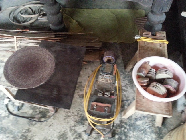 Công cụ làm lồng chim thô sơ. Ảnh: Phương Nhung.