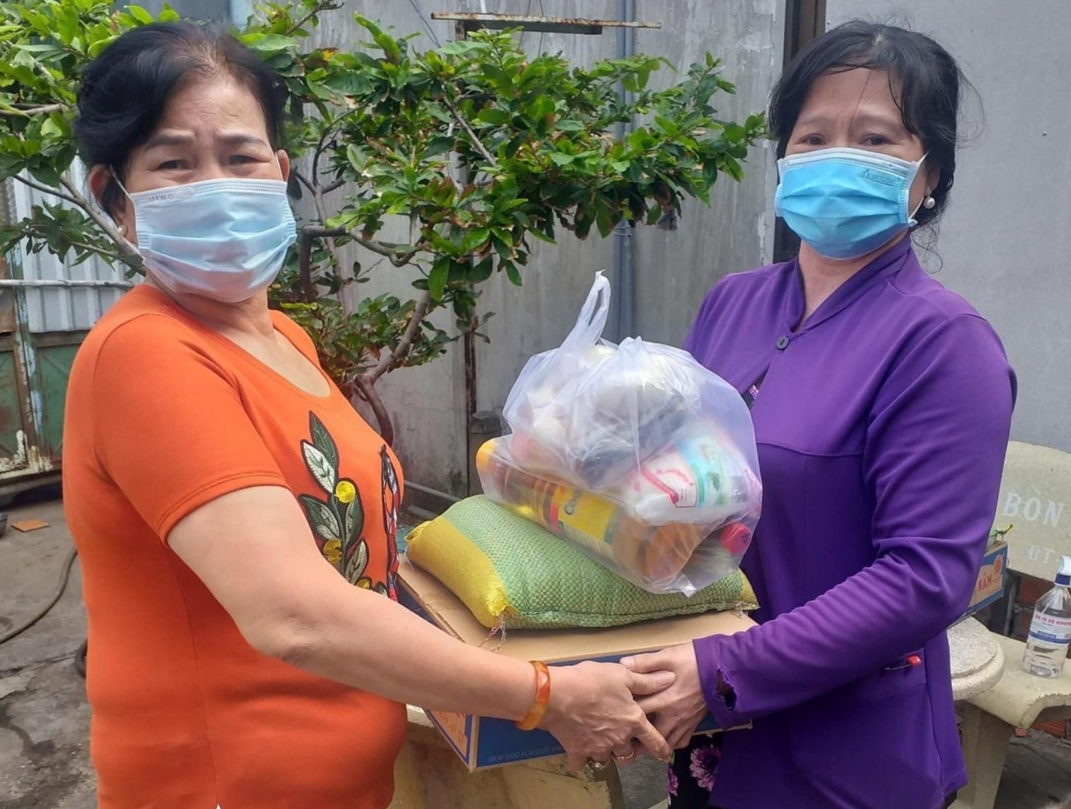 “Bà con xếp hàng 2 m, muốn chọn món nào nói em đưa cho nha”, anh Huỳnh Quang Khải (ngụ tại phường Hiệp Thành, quận 12, TP.HCM) vừa cầm loa điều phối, vừa trao tận tay những túi quà cho người dân ở một khu xóm trọ nghèo.