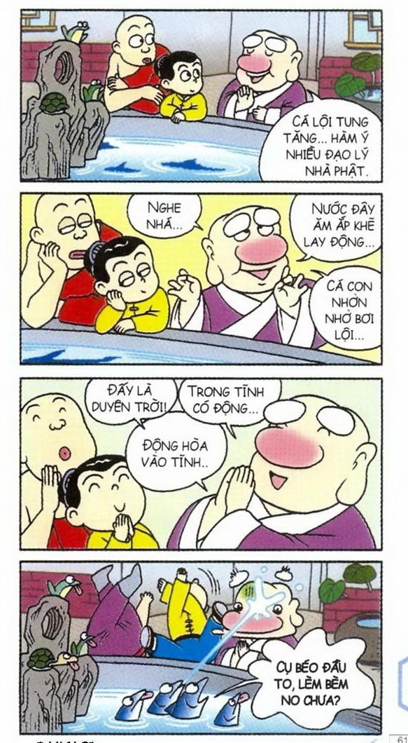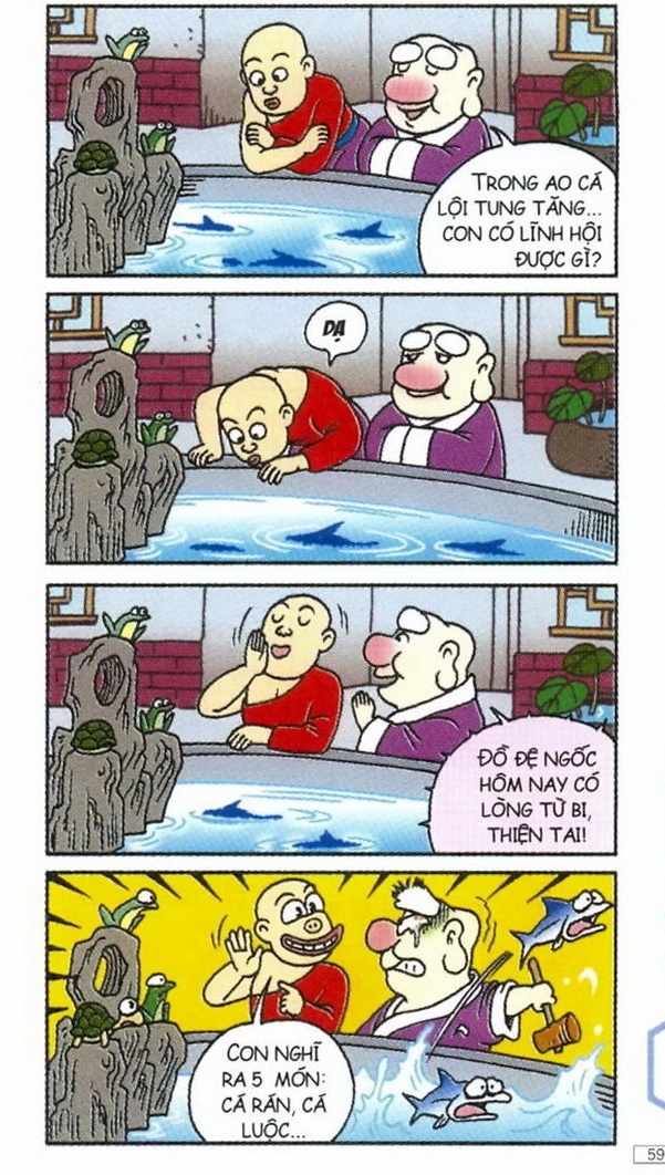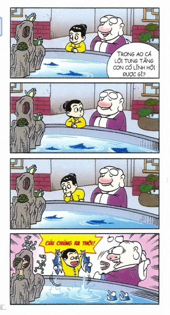 Nhịp sống Cười Thầy giỏi và trò ngốc Thứ năm, 9/10/2014 10:50 (GMT+7) 10:50 9/10/2014 Sư phụ cao nhân muốn truyền đạt các hàm ý sâu sa của đạo phật cho hai đệ tử, song những lời giáo huấn của ông giống như nước đổ lá khoai. Sư huynh và sư đệ bắn cungSư huynh ngốc và sư đệ láu cá thi bắn cung và nhiều sự kiện bất ngờ đã xảy ra. 10:13 2/10/2014 Sư huynh sư đệ sư phụ hài hước tức cảnh sinh tình lĩnh hội Đọc tiếp Điểm dở của cao thủ võ lâm 09:49 7/10/2014 09:49 7/10/2014 1 1 0 15 Cao thủ Thiếu Lâm đã luyện võ cao đến mức độ mình đồng da sắt, đao thương bất nhập. Nhưng cũng vì thế mà khi anh ta dính nội thương, các bác sĩ không thể cứu. Người chỉ huy quả cảm 14:12 30/9/2014 14:12 30/9/2014 8 10 -2 150 Người chỉ huy không muốn cấp dưới mạo hiểm tính mạng trước một trận chiến nguy hiểm, song chính cú giáng của ông khiến cấp dưới mất mạng. Phải mạnh mẽ hơn 08:53 2/10/2014 08:53 2/10/2014 0 4 Cặp thanh niên leo núi đã nhận được những lời khuyên rất chân thành của một cụ ông cao tuổi, thế nhưng thực tế không giống như họ nghĩ. Bạn có thể quan tâm