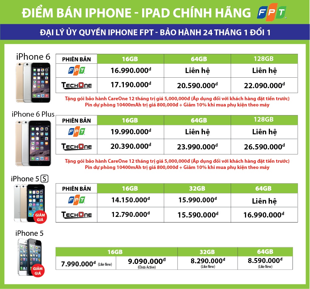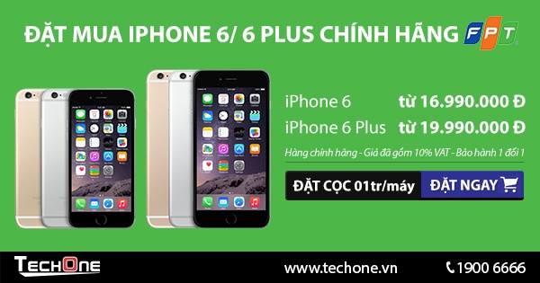 Đăt hàng iPhone 6/6 Plus FPT từ hôm nay với giá chỉ 1,69 triệu đồng để nhận ngay gói khuyến mại khủng trị giá 6 triệu đồng từ TechOne.