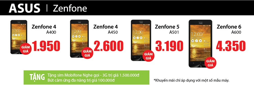 - Asus Zenfone A450: 2,5 triệu đồng (Giá cũ : 2.7 triệu)